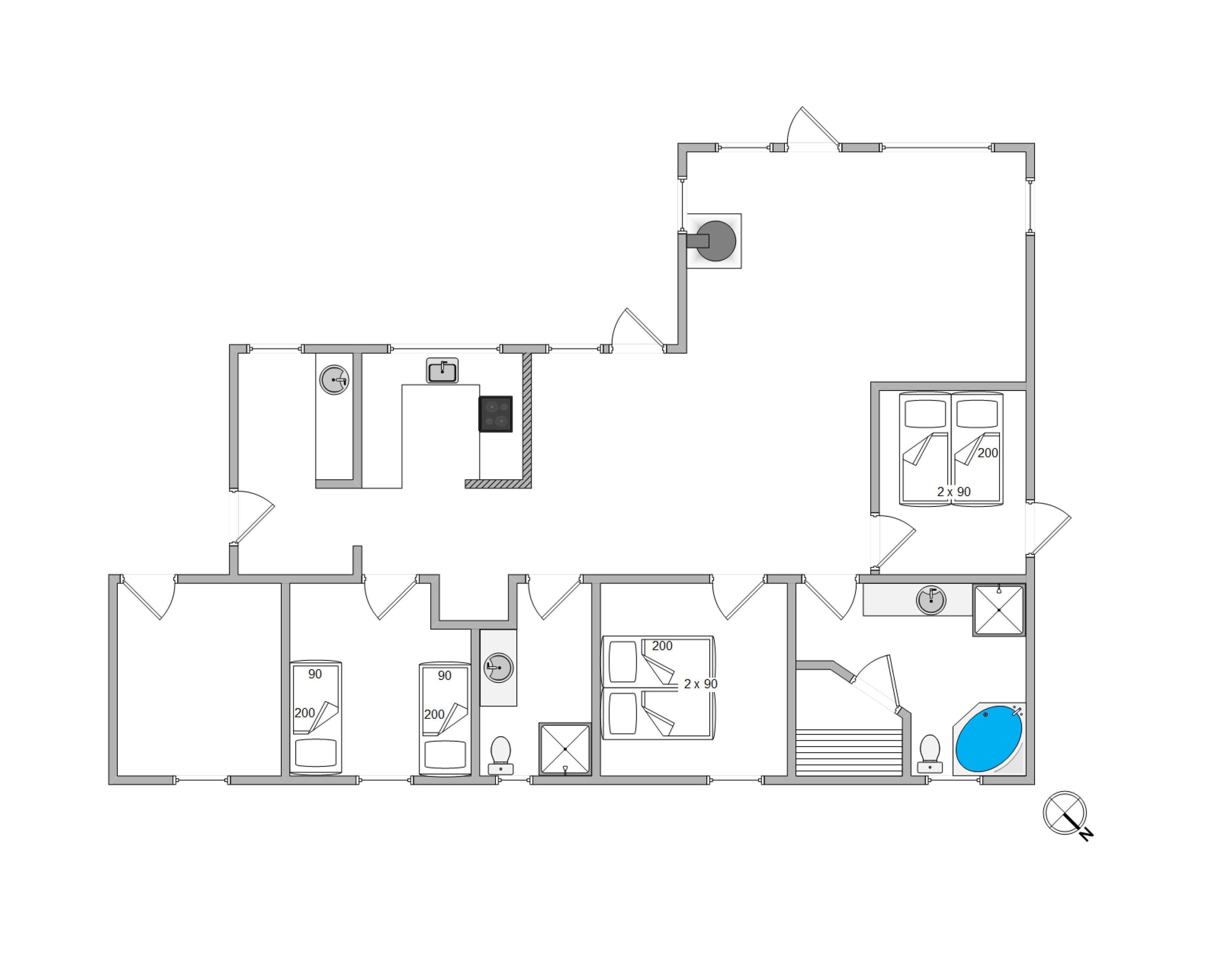 Der er to flotte badeværelser, hvoraf det ene er med spabad og sauna, så I kan blive varmet godt igennem og få kroppen til at slappe helt af efter en dejlig tur ved stranden.