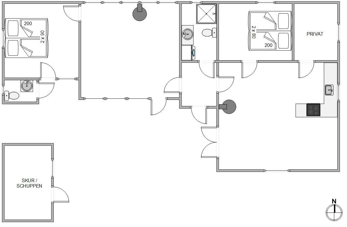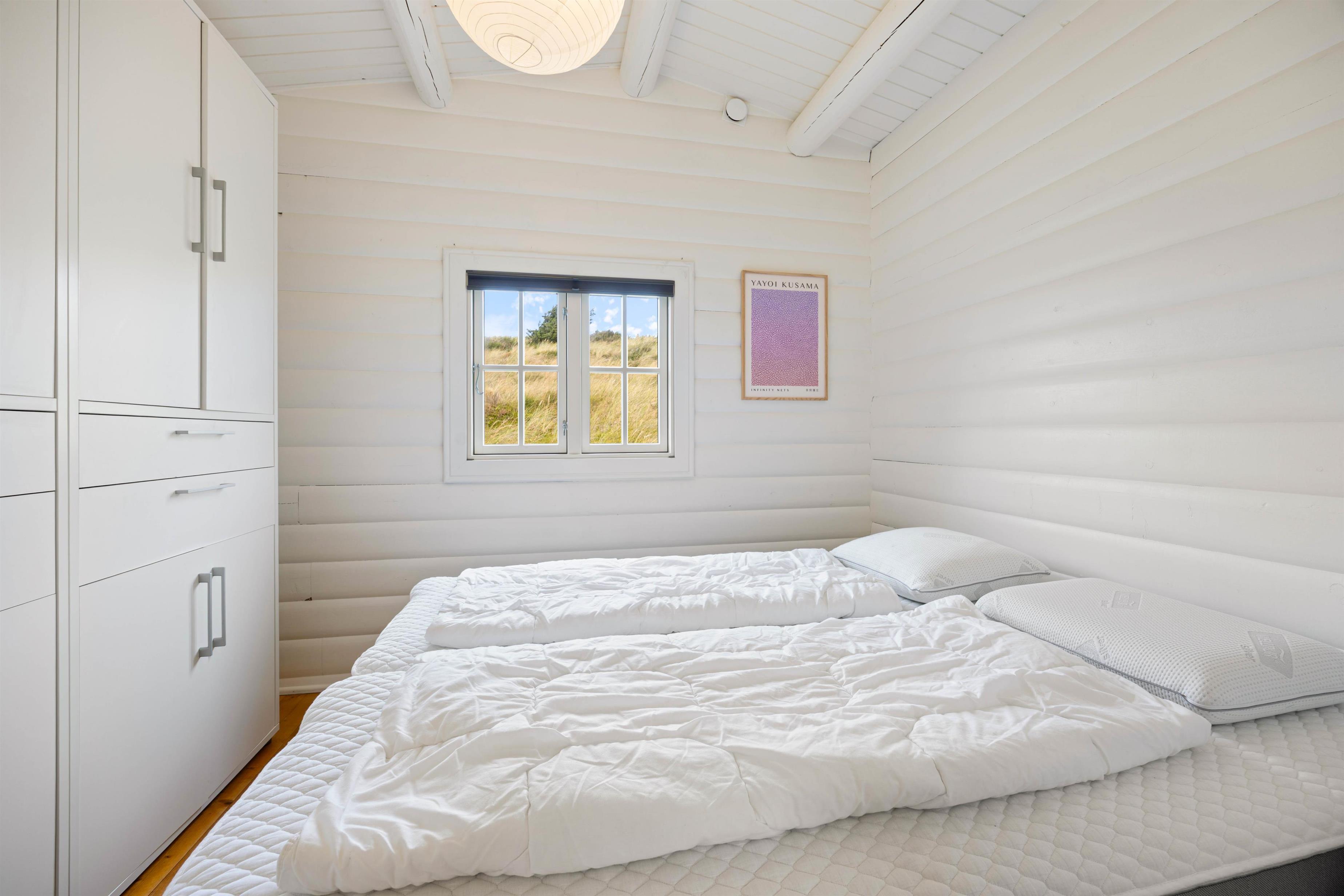 Med 2 soverum, der hver har 2 komfortable enkeltsenge, har sommerhuset plads til op til 4 personer. Feriehuset er ideelt indrettet, så I kan nyde både privatliv og fællesskab. Da op til 2 husdyr er tilladt, kan også jeres firbenede venner komme med på ferie. På den godt 2300 m² store klitgrund er der god plads til at børn og kæledyr kan gå på opdagelse.