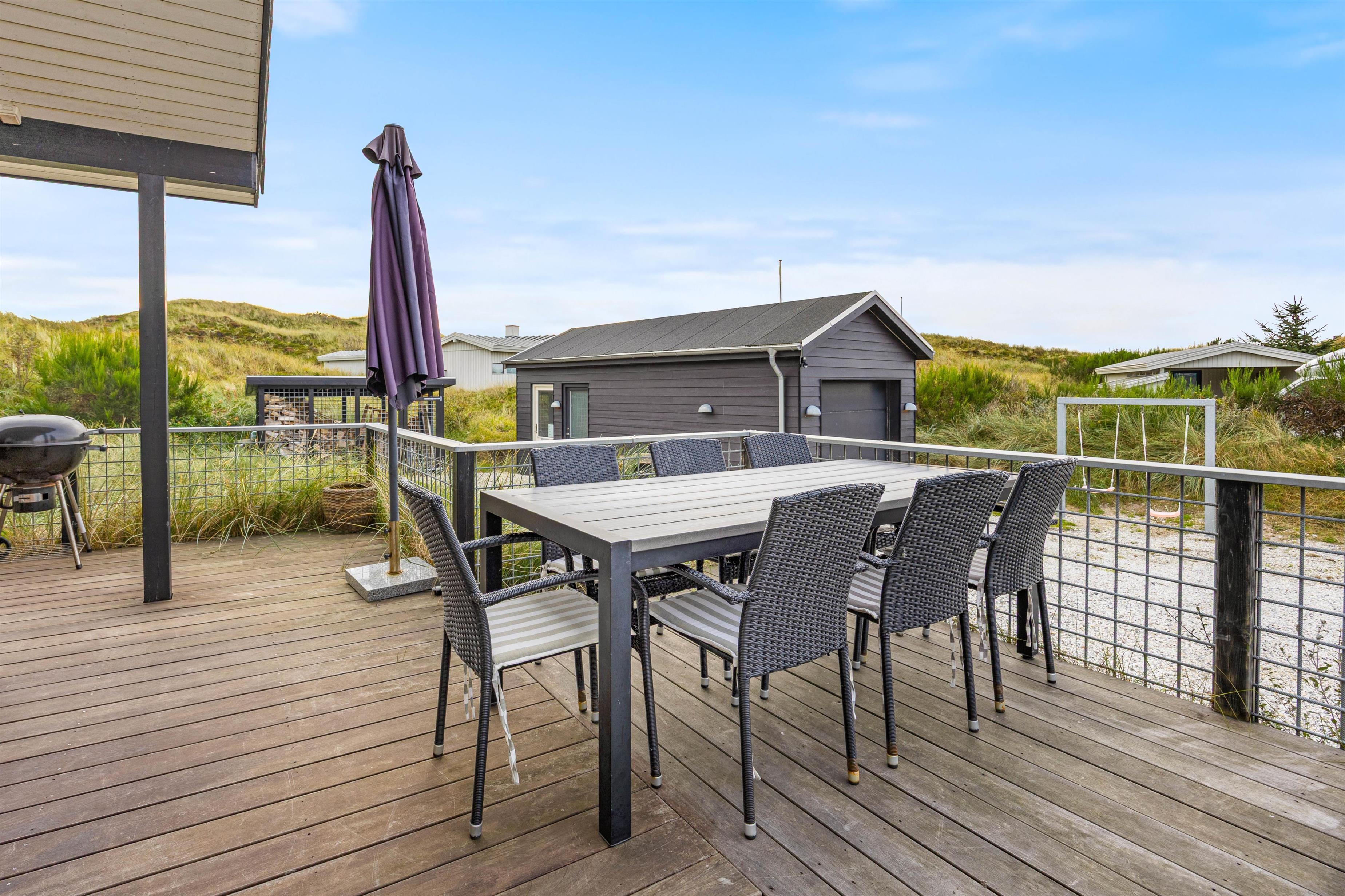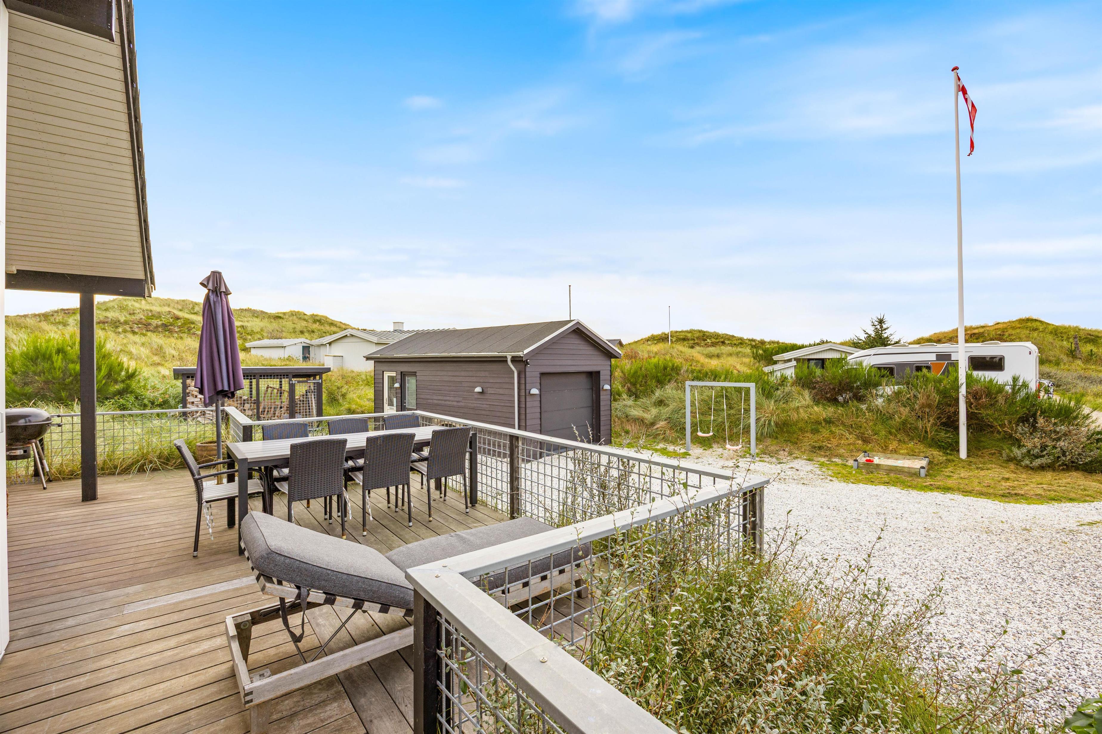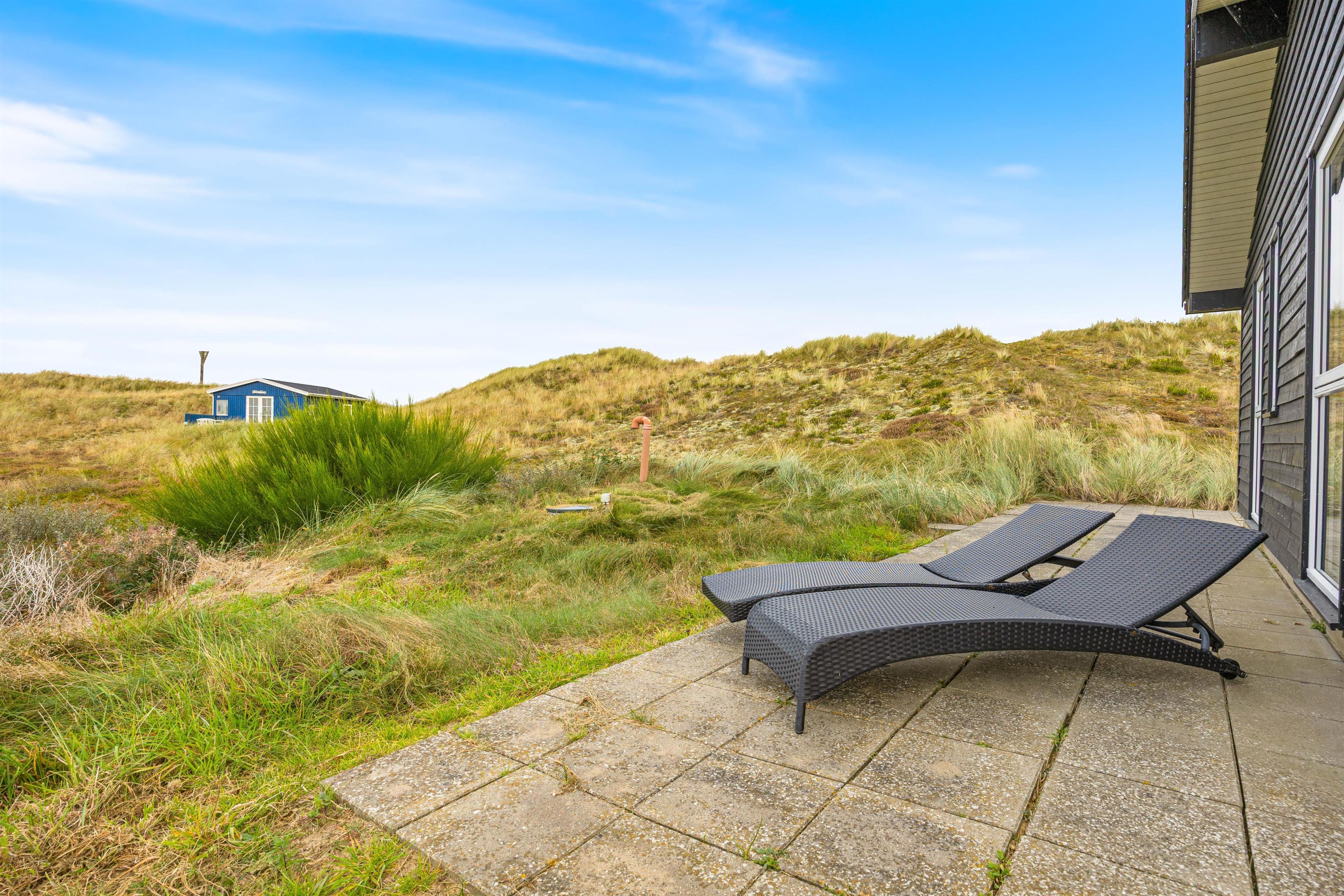 På den afskærmede og lukkede terrasse kan I nyde en middag under solen eller slappe af på den overdækkede terrasse med et godt glas vin, mens børnene leger i sandkassen eller gynger. Den store klitgrund på cirka 2200 kvadratmeter ligger kun en gåtur fra Ringkøbing Fjord til den ene side, og Vesterhavet på den anden, så I får rig mulighed for strandture og badning. Med solopgang over Ringkøbing Fjord og solnedgang i Vesterhavet bliver det vanskeligt at finde flottere beliggenhed.