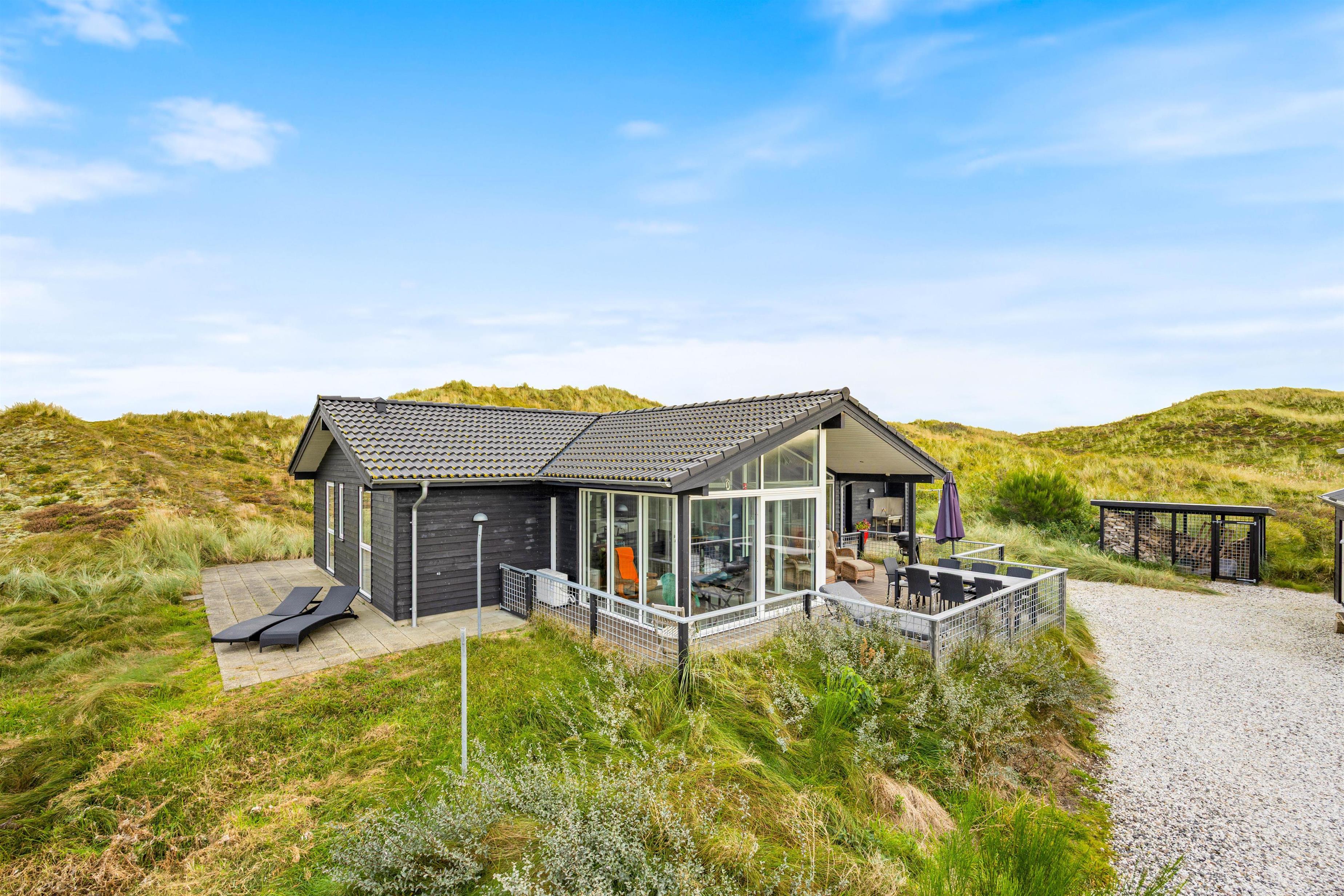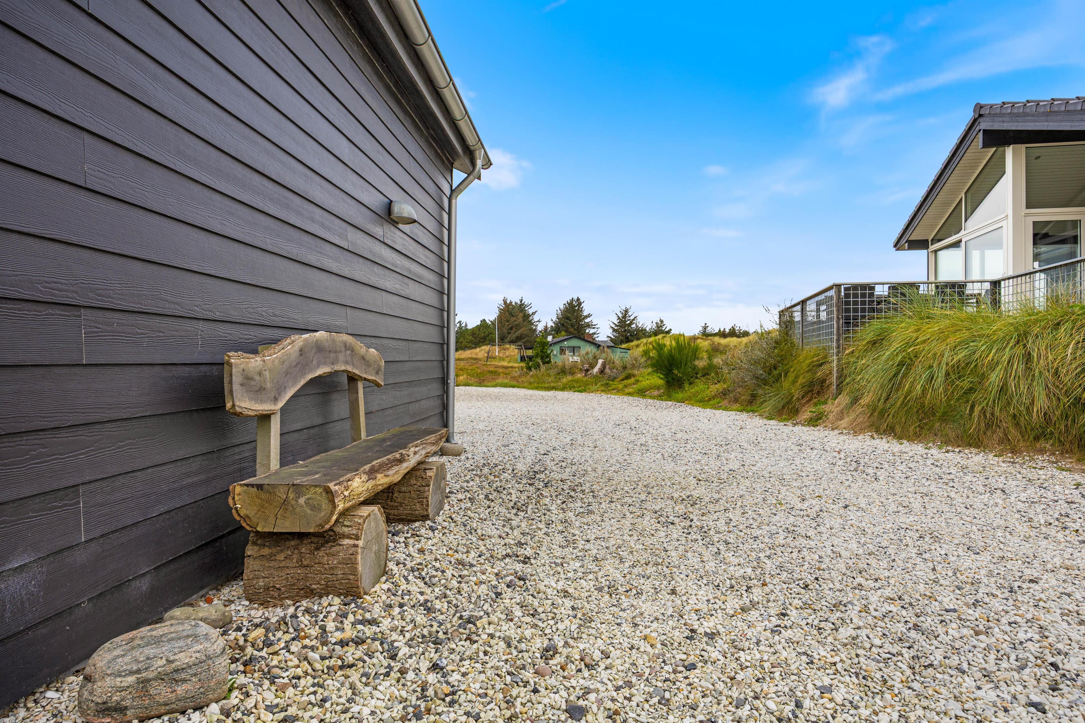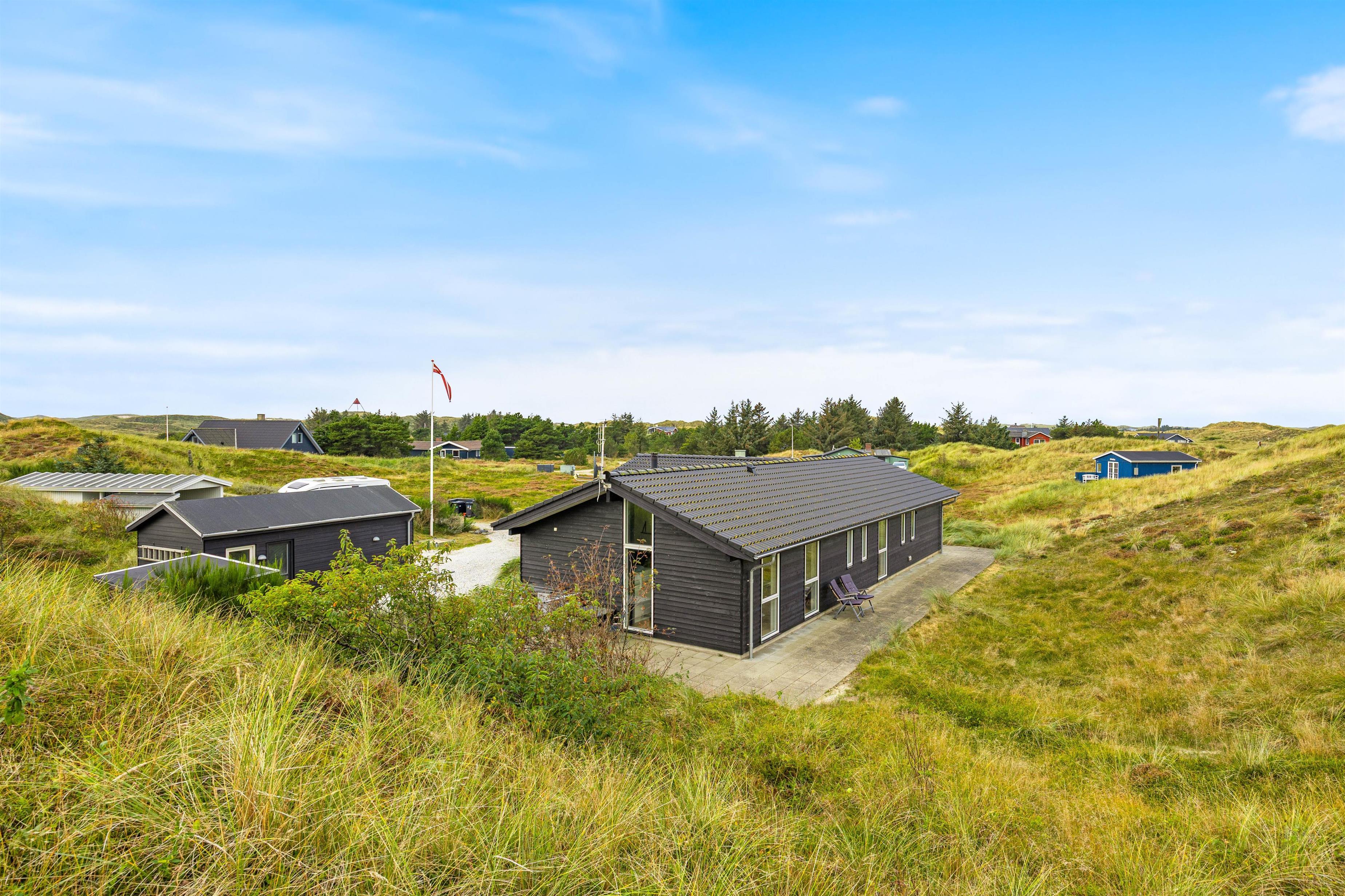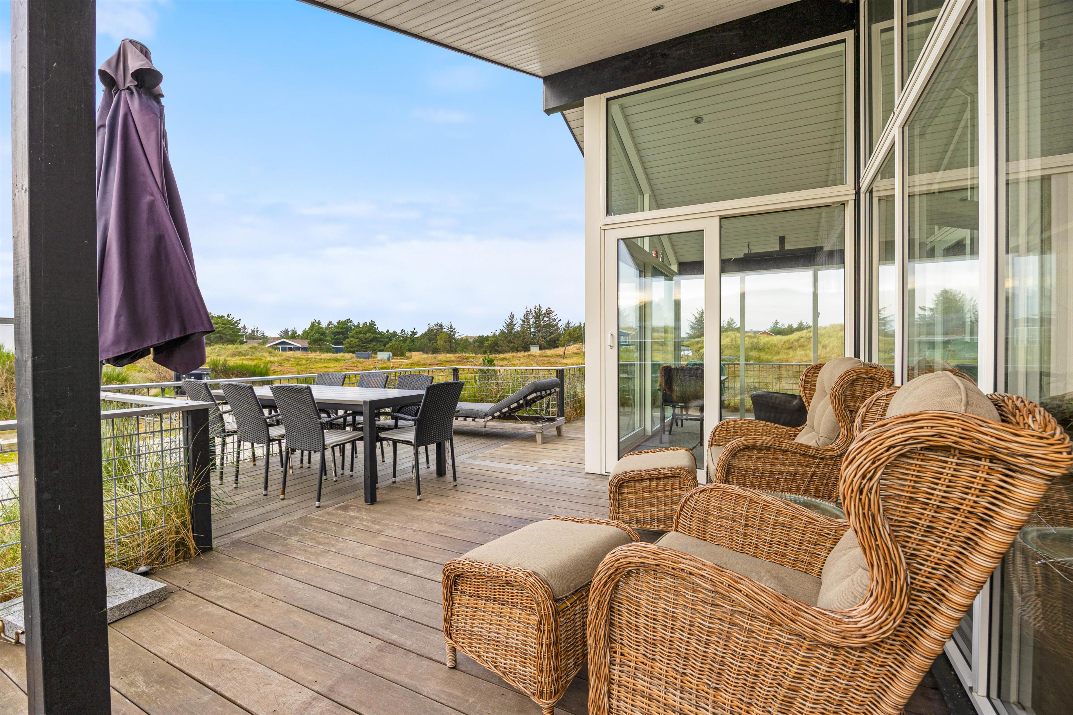 På den afskærmede og lukkede terrasse kan I nyde en middag under solen eller slappe af på den overdækkede terrasse med et godt glas vin, mens børnene leger i sandkassen eller gynger. Den store klitgrund på cirka 2200 kvadratmeter ligger kun en gåtur fra Ringkøbing Fjord til den ene side, og Vesterhavet på den anden, så I får rig mulighed for strandture og badning. Med solopgang over Ringkøbing Fjord og solnedgang i Vesterhavet bliver det vanskeligt at finde flottere beliggenhed.