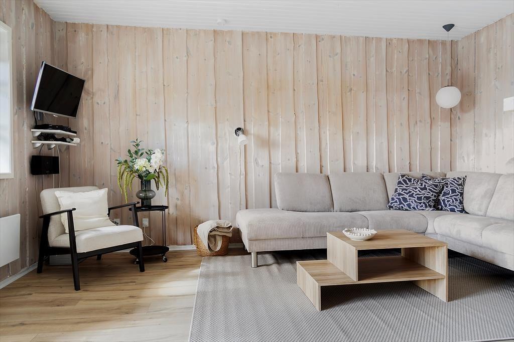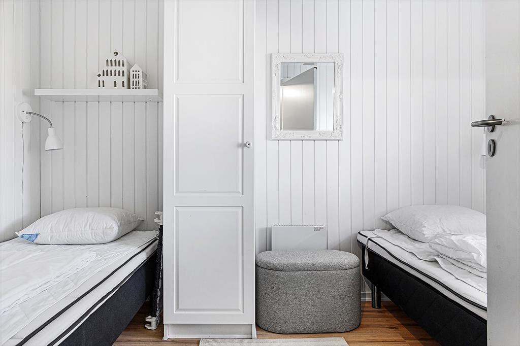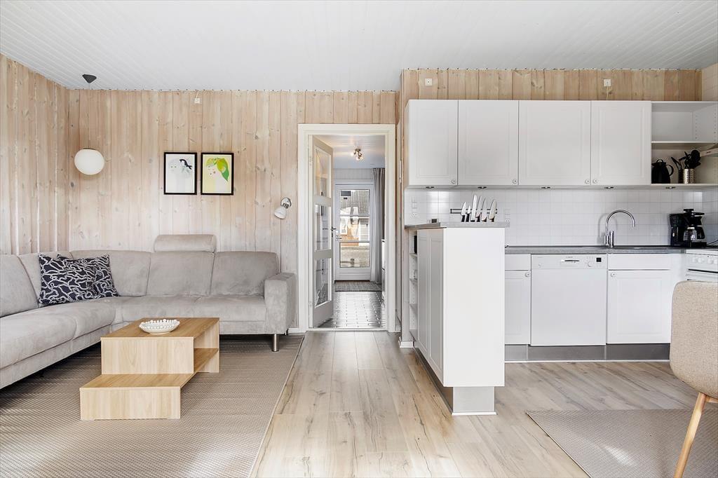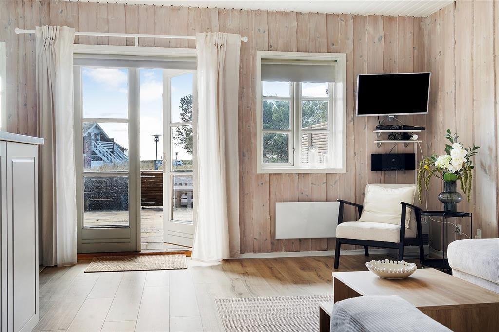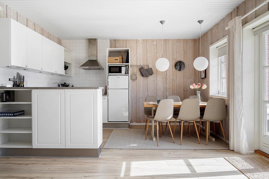 Lejligheden, der ligger i stueplan i en solid rødstensejendom, blev renoveret på gennemført og omsorgsfuld vis i 2015. Indretningen er både hyggelig og komfortabel, og med lyse trælister på væggene, profilerede døre og flere fine detaljer er den klassiske, skandinaviske sommerhuscharme helt i top. Planløsningen byder på to soveværelser, der begge er indrettet med to enkeltsenge. Ferieboligen rummer naturligvis også et badeværelse og sidst, men ikke mindst, et stort opholdsrum med integreret køkken. Det veludstyrede køkken er et dejligt sted at hygge om madlavningen, mens resten af familien slapper af i sofaafdelingen eller spiller terninger ved spisebordet.