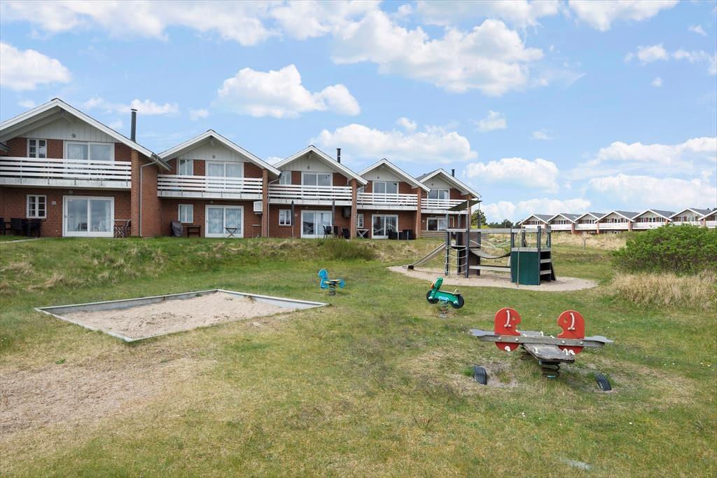Fra stuen giver havedøren direkte adgang til en stor og solrig terrasse. Den er omkranset af plankeværk og dermed helt aflukket – hvilket småbørnsfamilier sikkert vil sætte pris på. De yngste feriegæster vil garanteret også blive glade for den gode legeplads, som ligger ganske tæt på lejligheden.