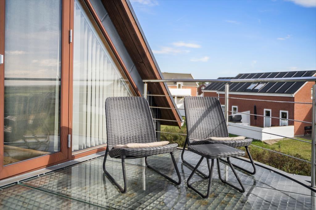 Også ude i det fri kan I suge udsigten til jer fra det sydvendte terrassemiljøet. I kan også gå op på førstesalens altan, hvorfra har I et glimrende udsyn og kan følge med i færgesejladsen mellem Rømø og Sild – det er en god måde at komme helt ned i tempo og mærke feriefornemmelsen brede sig.
