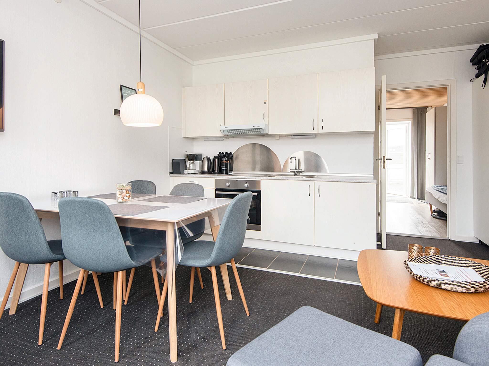 Lejligheden er indrettet med et mindre opholdsrum hvor både køkken, spiseplads og dobbeltopredning findes. Derudover et større soveværelse med skabsplads og dobbeltseng. I entreen, som er forbundet med soverum, badeværelse og køkken er der opsat en enkeltseng, så lejligheden totalt kan rumme 5 personer.