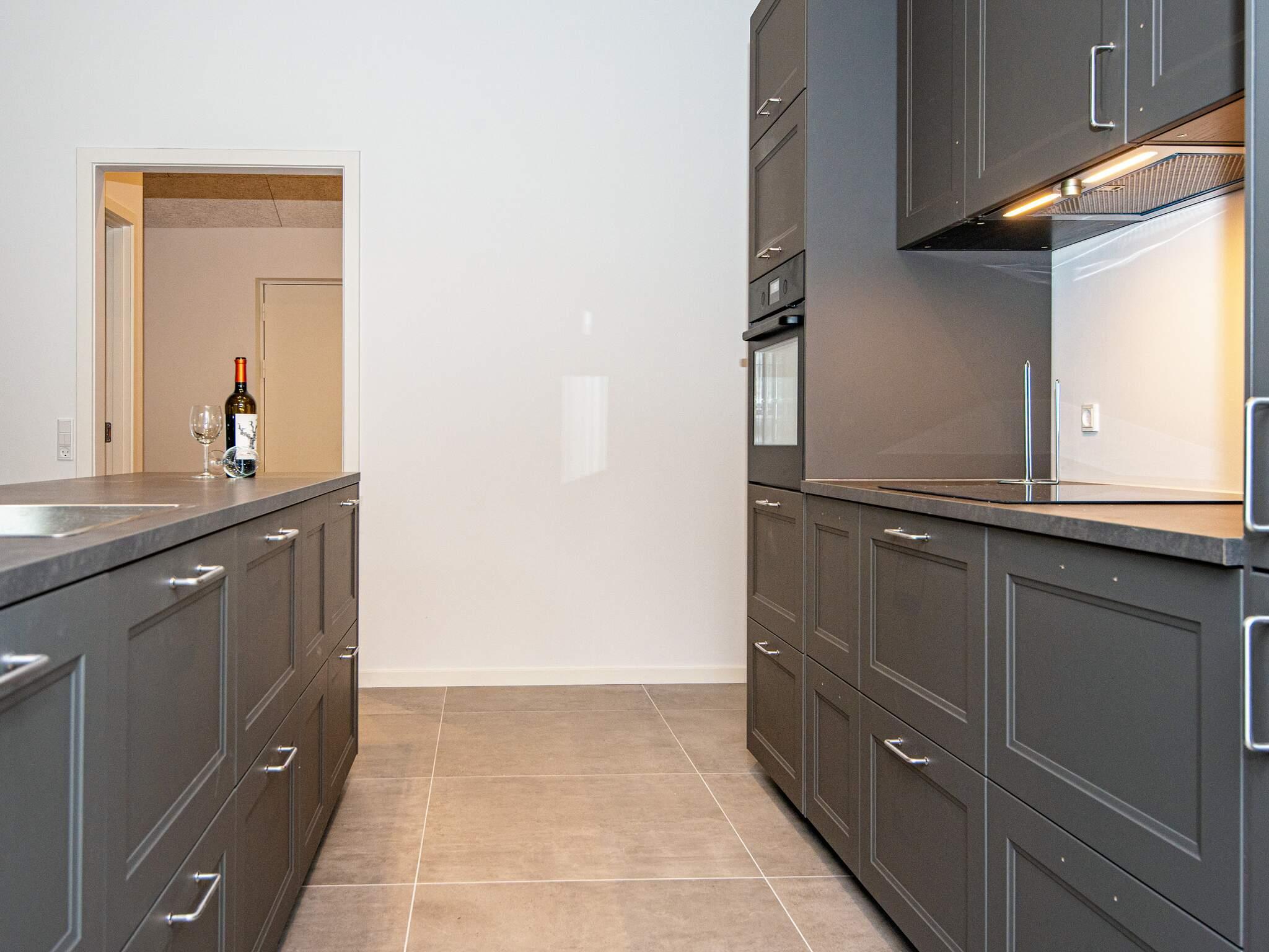 Køkken: Høj stol, ovn, køle-frys, fryser 60 - 99 l, mikroovn, induktionskomfur, kaffemaskine, opvaskemask.