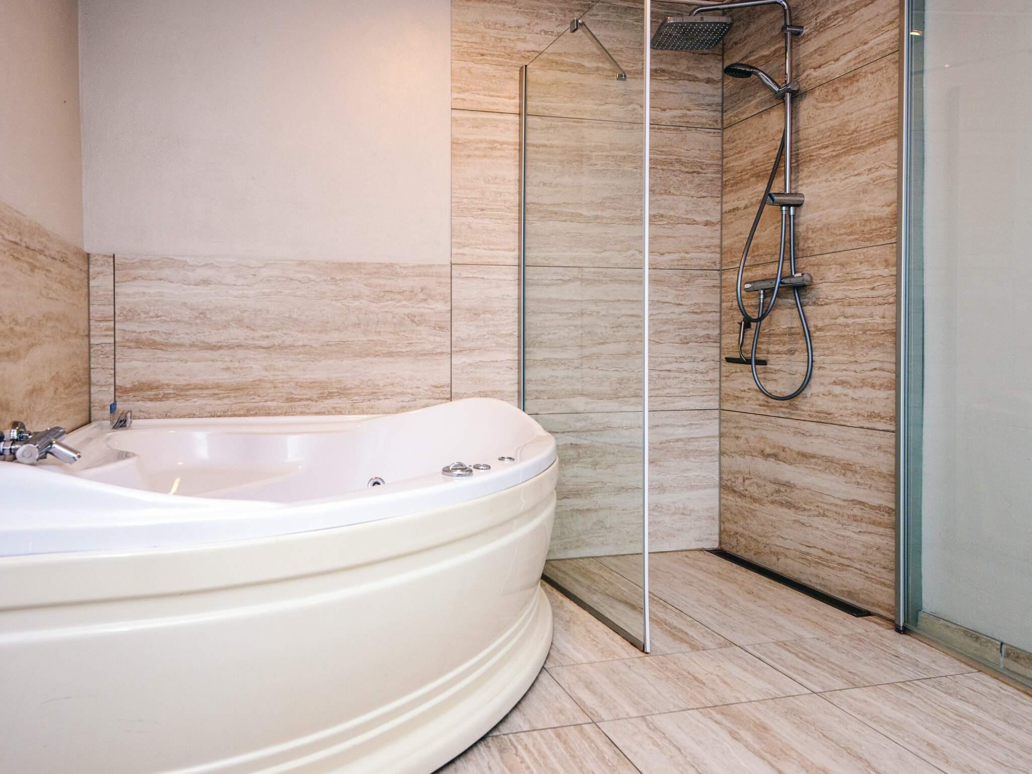 Ejendommen består af et hovedhus og et separat anneks. Hovedhuset har et stort, fuldt udstyret køkken med opvaskemaskine, en tilstødende spiseplads og en komfortabel stue. Der er fem soveværelser og to badeværelser, hvoraf det ene omfatter spabad og bruser, hvilket giver rigelig plads og komfort for familier eller grupper.
