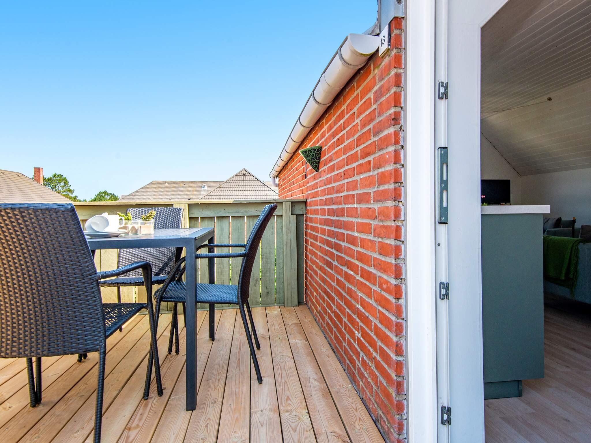 Lejlighed på 1. sal med udgang til afskærmet terrasse med havemøbler. Køkken i åben forbindelse med spiseplads og opholdsrum. Badeværelse med bruseniche. Det ene værelse med 3/4 seng er gennemgang til det andet. I det ene soveværelse er der en køjeseng med udtræksseng. Feriecenter Rim har mange aktivitetsmuligheder, bl.a. indendørs- og udendørs pool (sæsonåbent), minigolf, tennisbaner, boldbaner og legepladser. Kort afstand til indkøb, restauranter,fælles vaskeri, Vadehavet, Havneby med det maritime miljø og den brede Rømø Sønderstrand. Der er kun ca. 100 m til 18-hullers golfbane. Der er gode indkøbsmuligheder og muligheder for at spadsere langs havnen og nede ved vadehavet. Udlejes ikke til ungdomsgrupper.
