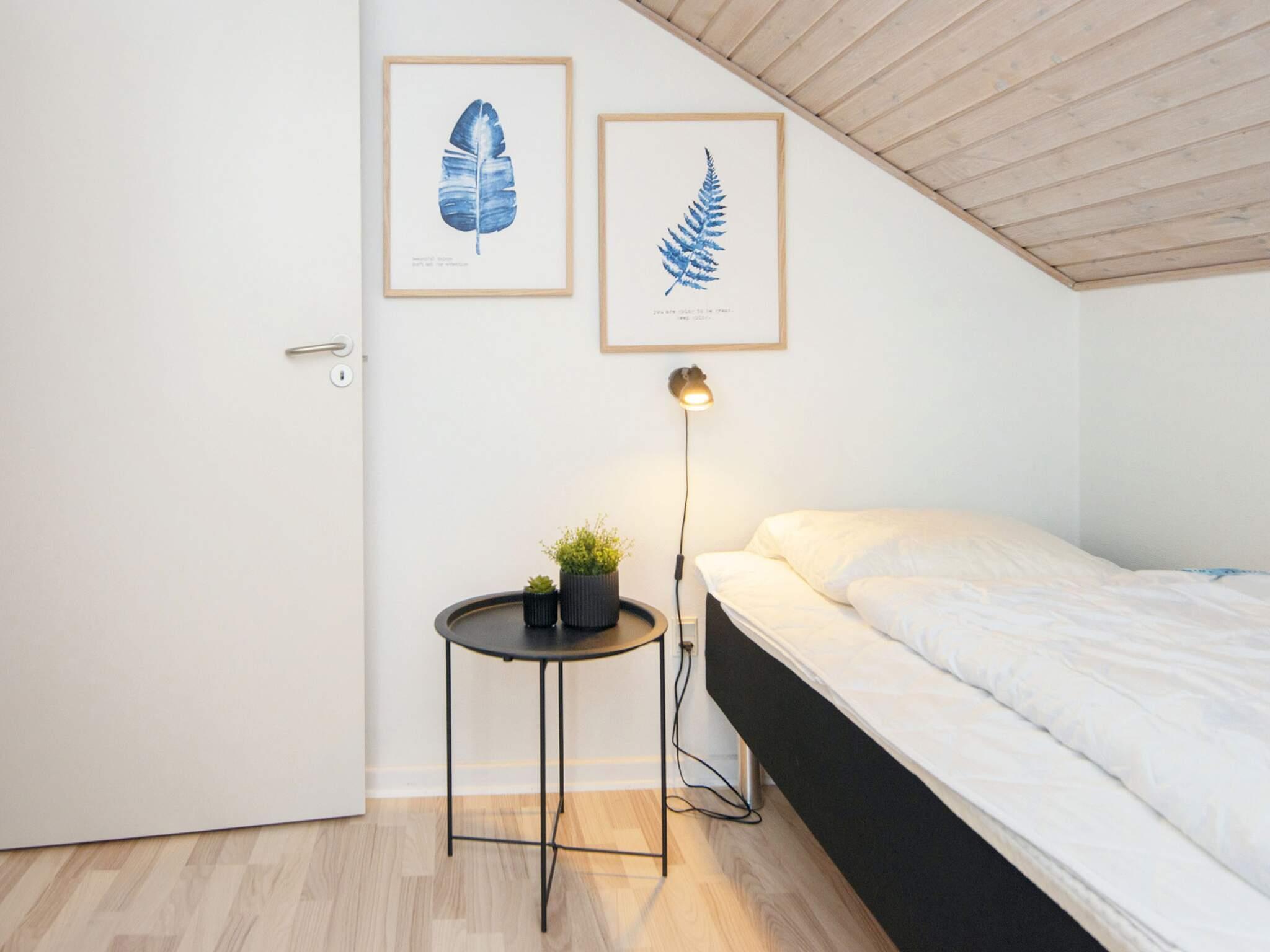 Ovenpå loftet er der to soveværelser med god skabsplads. Et soveværelse har en dobbeltseng, mens det andet soveværelse har en dobbeltseng og en enkeltseng, hvilket giver fleksible sovearrangementer. Et badeværelse med bruser er bekvemt placeret ovenpå. For familier med små børn, er en høj stol og fold-ud barneseng også tilgængelige.
