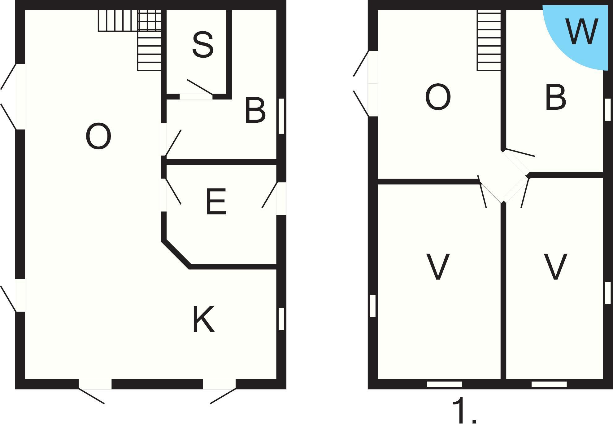 1 Opholdsstue: (1DO), brændeovn, radio, dvd-afspiller, tv, høj stol