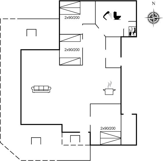 Der er i alt 3 soveværelser. Sovepladserne fordeler sig på: 4 sovepladser i dobbeltsenge. 2 sovepladser i enkeltsenge. Derudover er der 1 stk. barneseng.