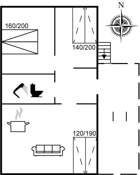 Der er i alt 1 soveværelse. Sovepladserne fordeler sig på: 2 sovepladser i dobbeltseng. 4 sovepladser i sovesofa (dobbelt). Derudover er der 1 stk. barneseng.