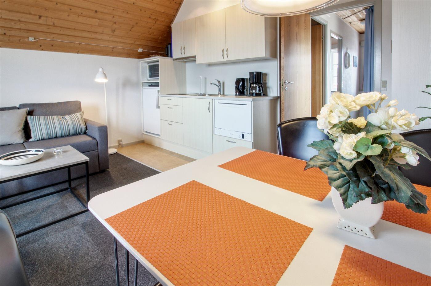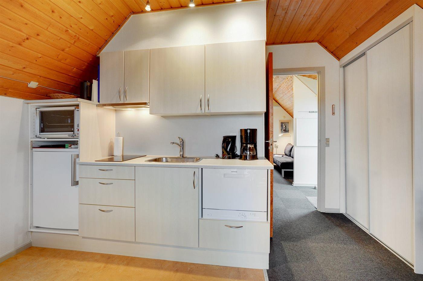 Køkkenet er udstyret med 1 køleskab. Der er 2 induktionskogeplader, miniovn samt opvaskemaskine (bordmodel).
