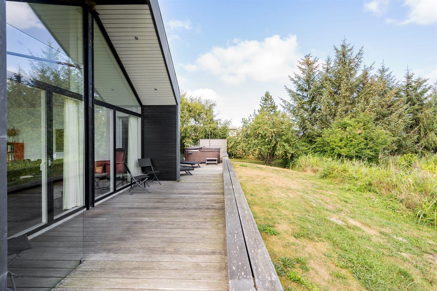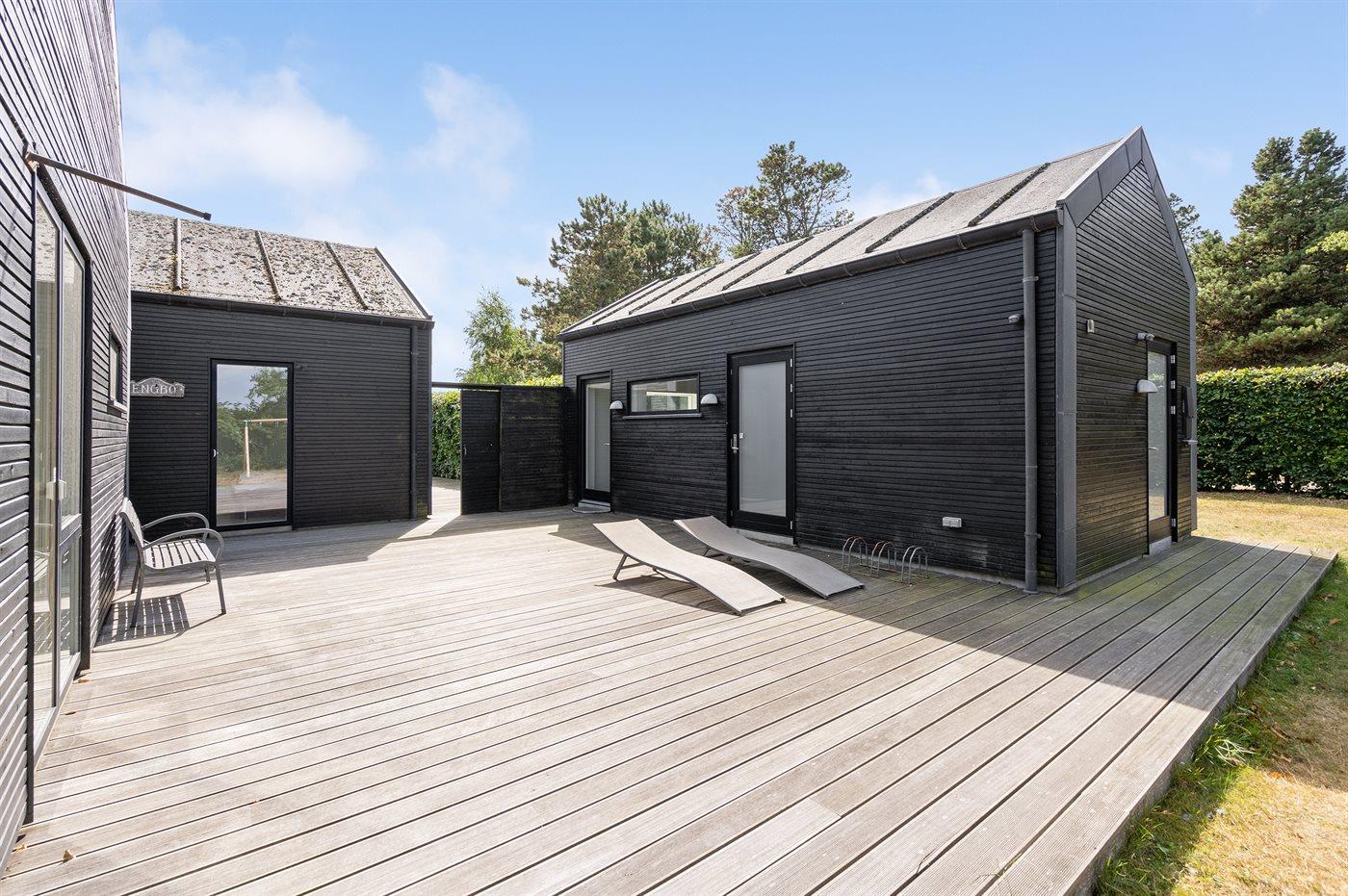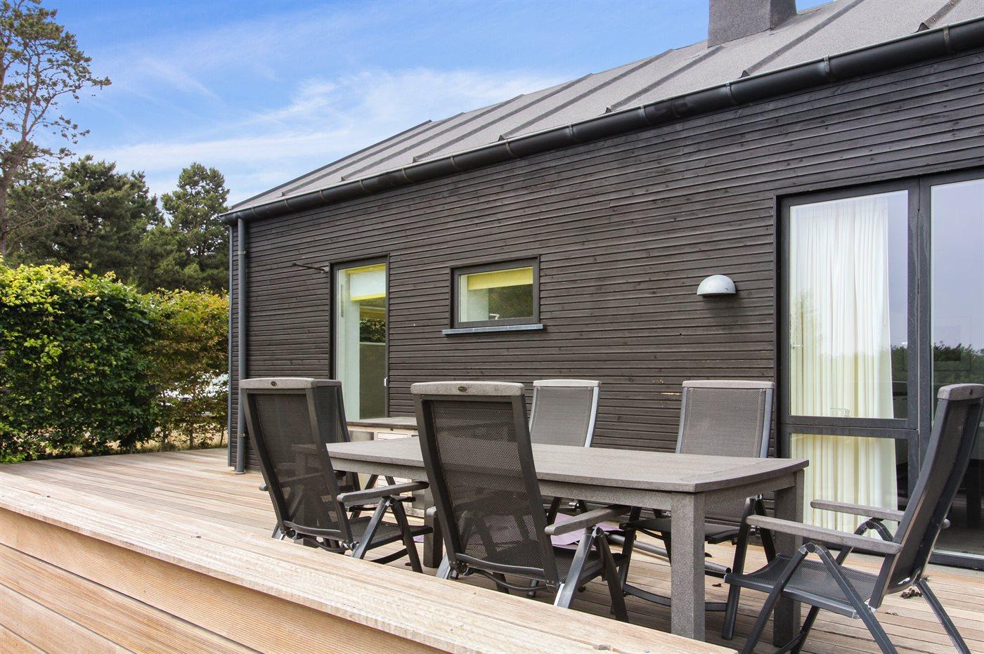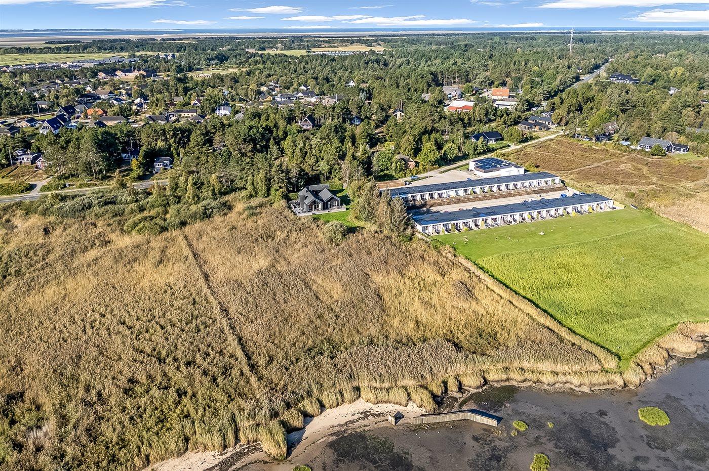 Ferieboligen er beliggende på en 2000 m² stor naturgrund. Der er 95 m til havet. Der er 40 m til Vadehavet. Nærmeste forretning er beliggende i en afstand af 530 m. Der er en golfbane i en afstand af 500 m. Til ferieboligen hører 150 m² terrasseareal. Gynge. Sandkasse. Udendørs bruser. På lune aftener sørger en udendørs pejs for hyggelig stemning. Der er installeret stik til opladning af elbil. Type 2 stik. Parkering ved ferieboligen.