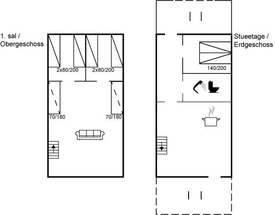 Der er i alt 3 soveværelser. Sovepladserne fordeler sig på: 6 sovepladser i dobbeltsenge. 2 sovepladser i sovesofa (enkelt). Derudover er der 1 stk. barneseng.