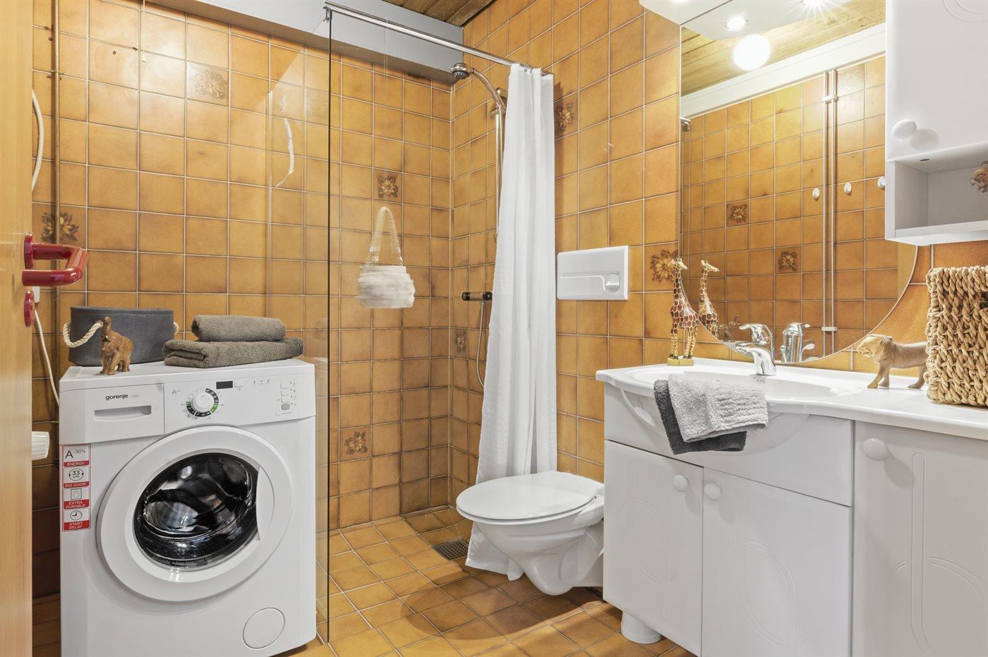 Der er 1 badeværelse med bruseniche og 1 toilet.