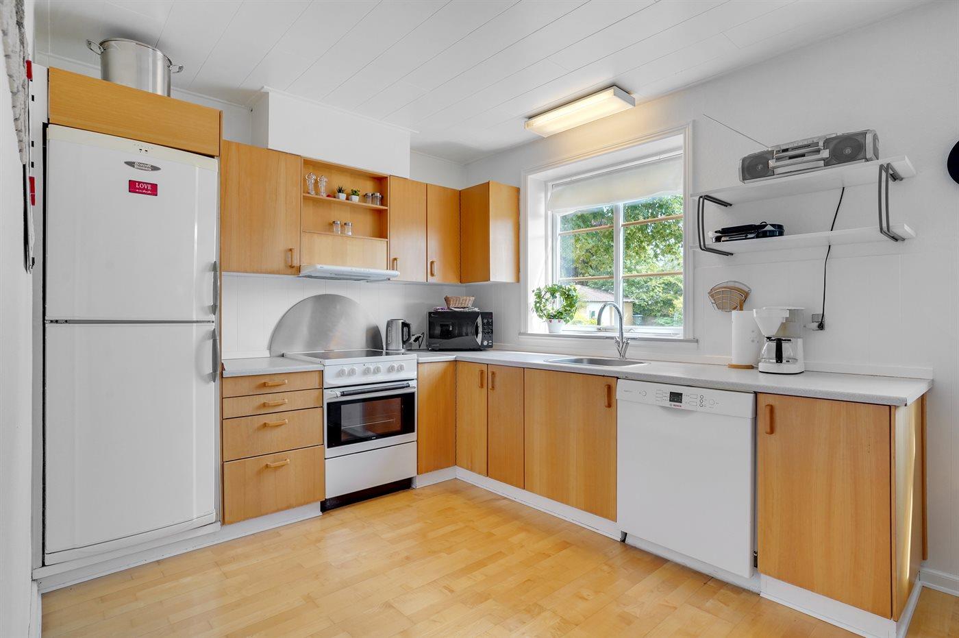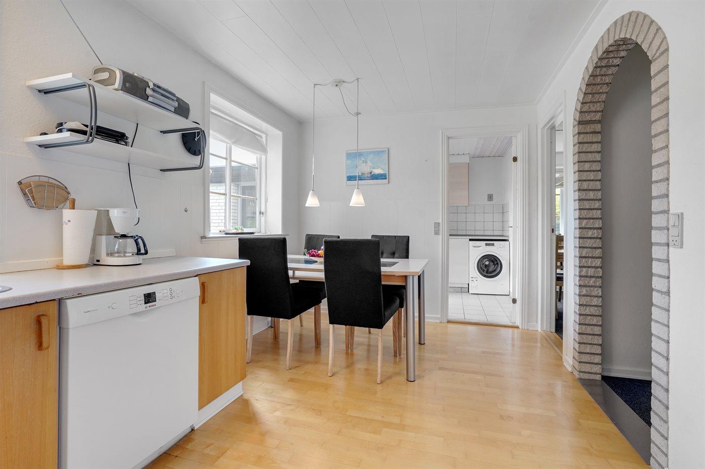 Køkkenet er udstyret med 1 køleskab. Der er 4 keramiske kogeplader, varmluftovn, mikrobølgeovn samt opvaskemaskine.