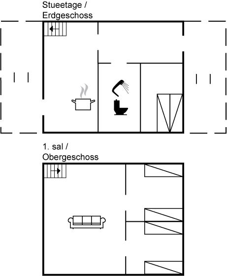 Der er i alt 3 soveværelser. Sovepladserne fordeler sig på: 2 sovepladser i dobbeltseng. 4 sovepladser i enkeltsenge. Derudover er der 1 stk. barneseng.