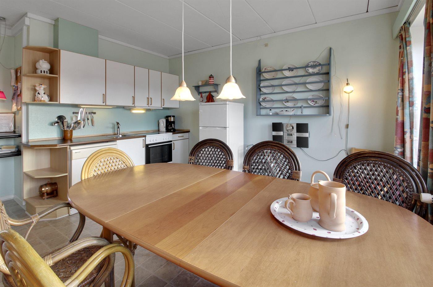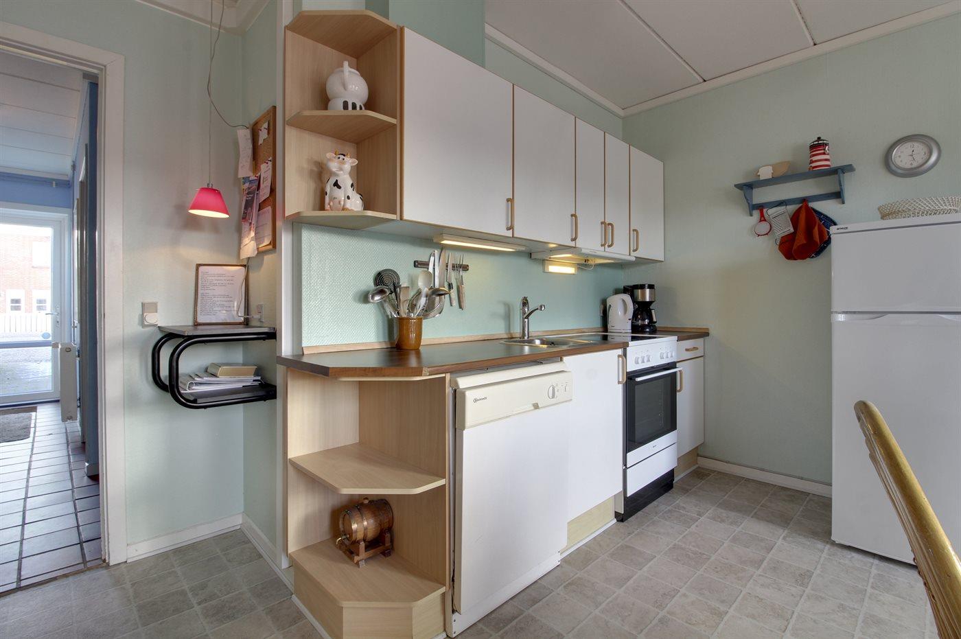 Køkkenet er udstyret med 1 køleskab. Der er 4 keramiske kogeplader, varmluftovn samt opvaskemaskine.