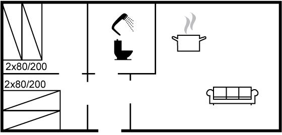 Der er i alt 2 soveværelser. Sovepladserne fordeler sig på: 2 sovepladser i dobbeltseng. 2 sovepladser i enkeltsenge.