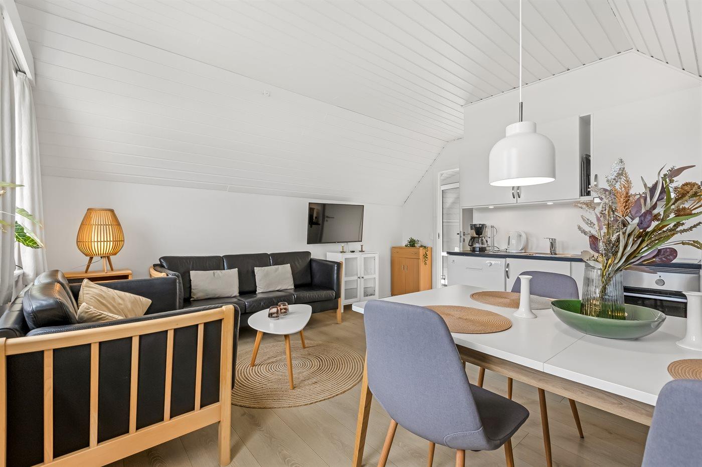 Køkkenet er udstyret med 1 køleskab. Der er 4 keramiske kogeplader, varmluftovn samt opvaskemaskine.