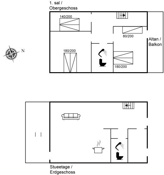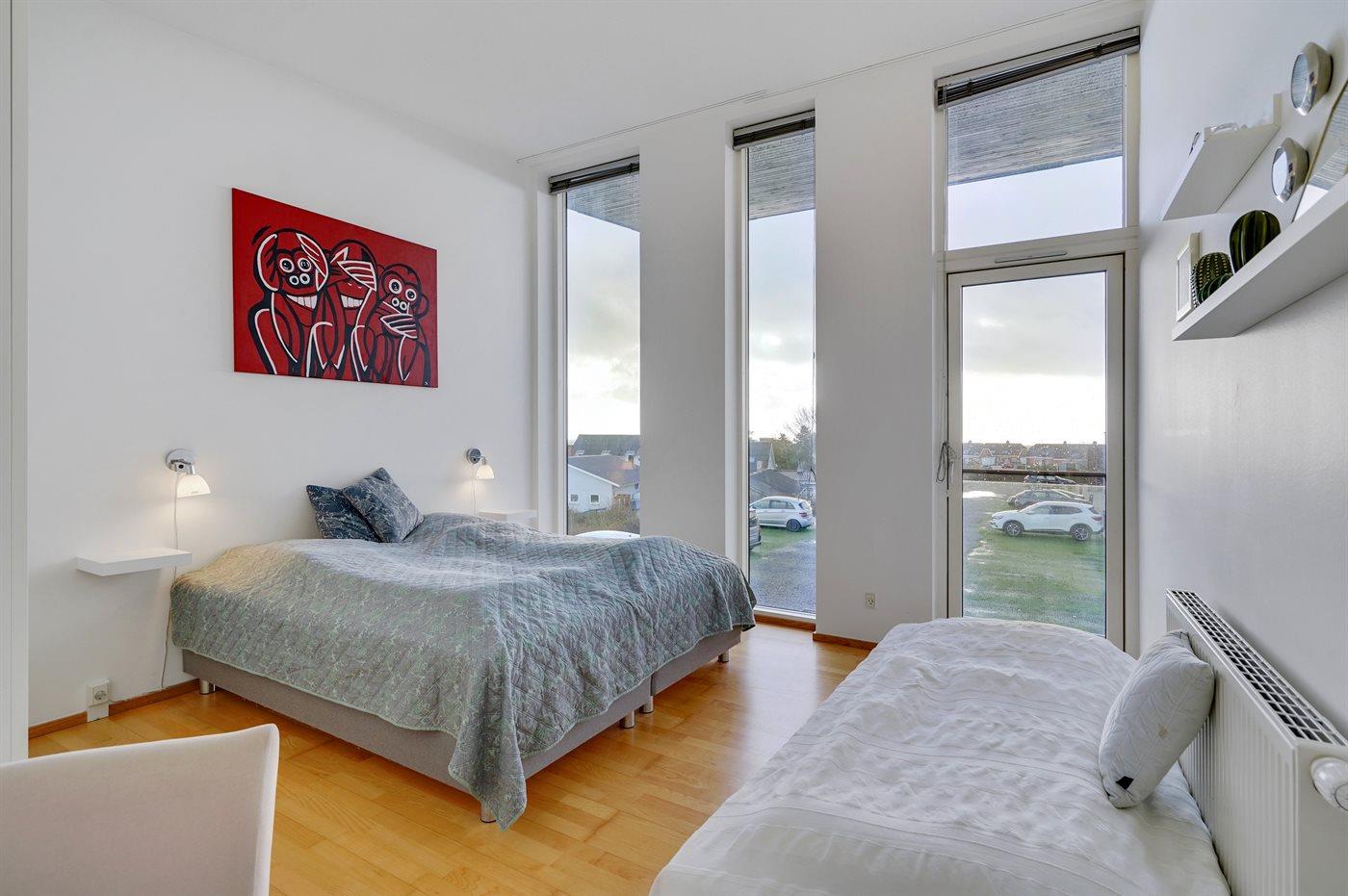 Der er i alt 3 soveværelser. Sovepladserne fordeler sig på: 6 sovepladser i dobbeltsenge. 1 soveplads i enkeltseng. Derudover er der 1 stk. barneseng.