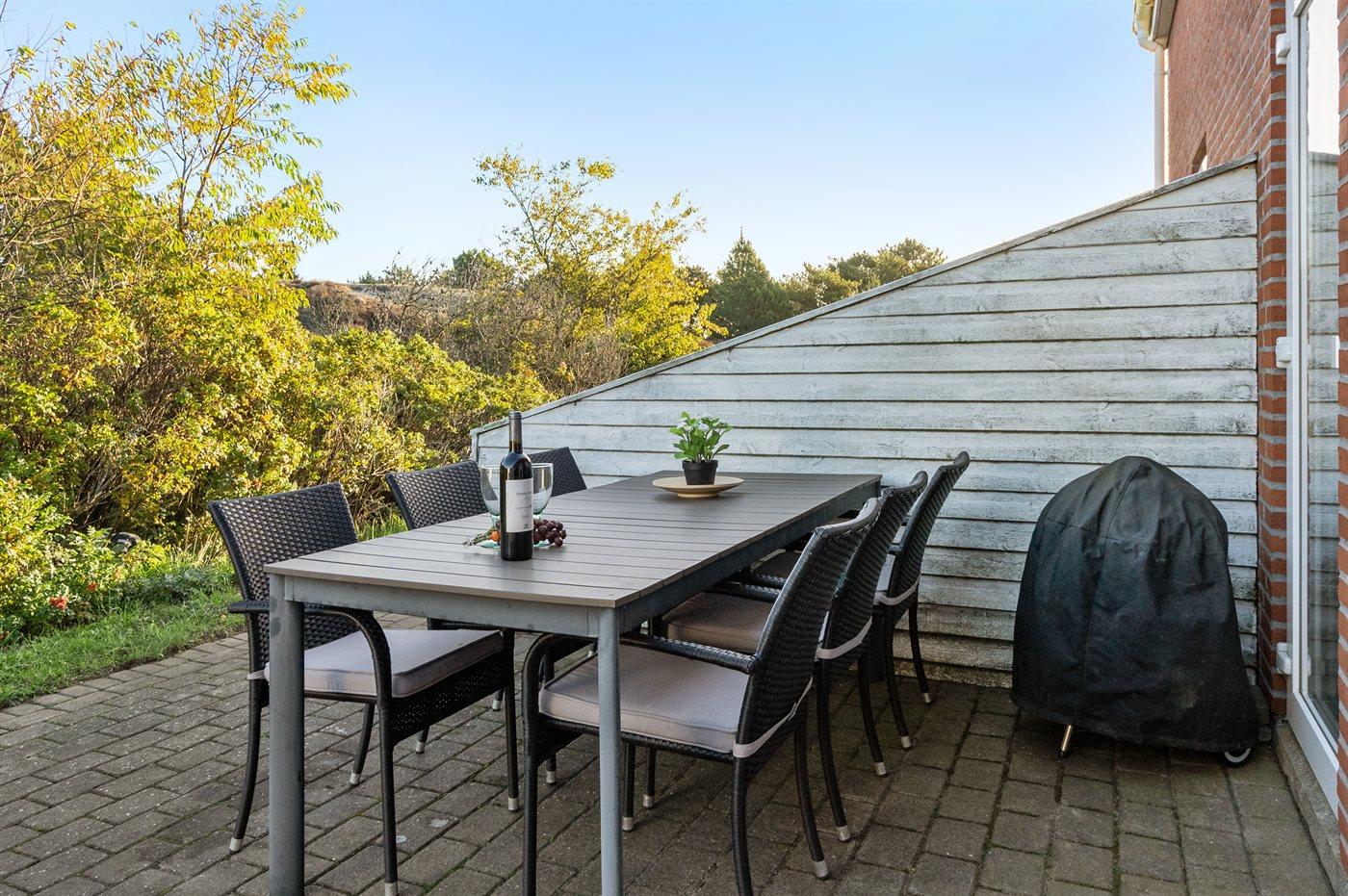 Ferieboligen er beliggende på en 200 m² stor naturgrund. Der er 2300 m til havet. Der er 500 m til Vadehavet. Nærmeste forretning er beliggende i en afstand af 1100 m. Der er en golfbane i en afstand af 100 m. Til ferieboligen hører 26 m² terrasseareal. Parkering ved ferieboligen.