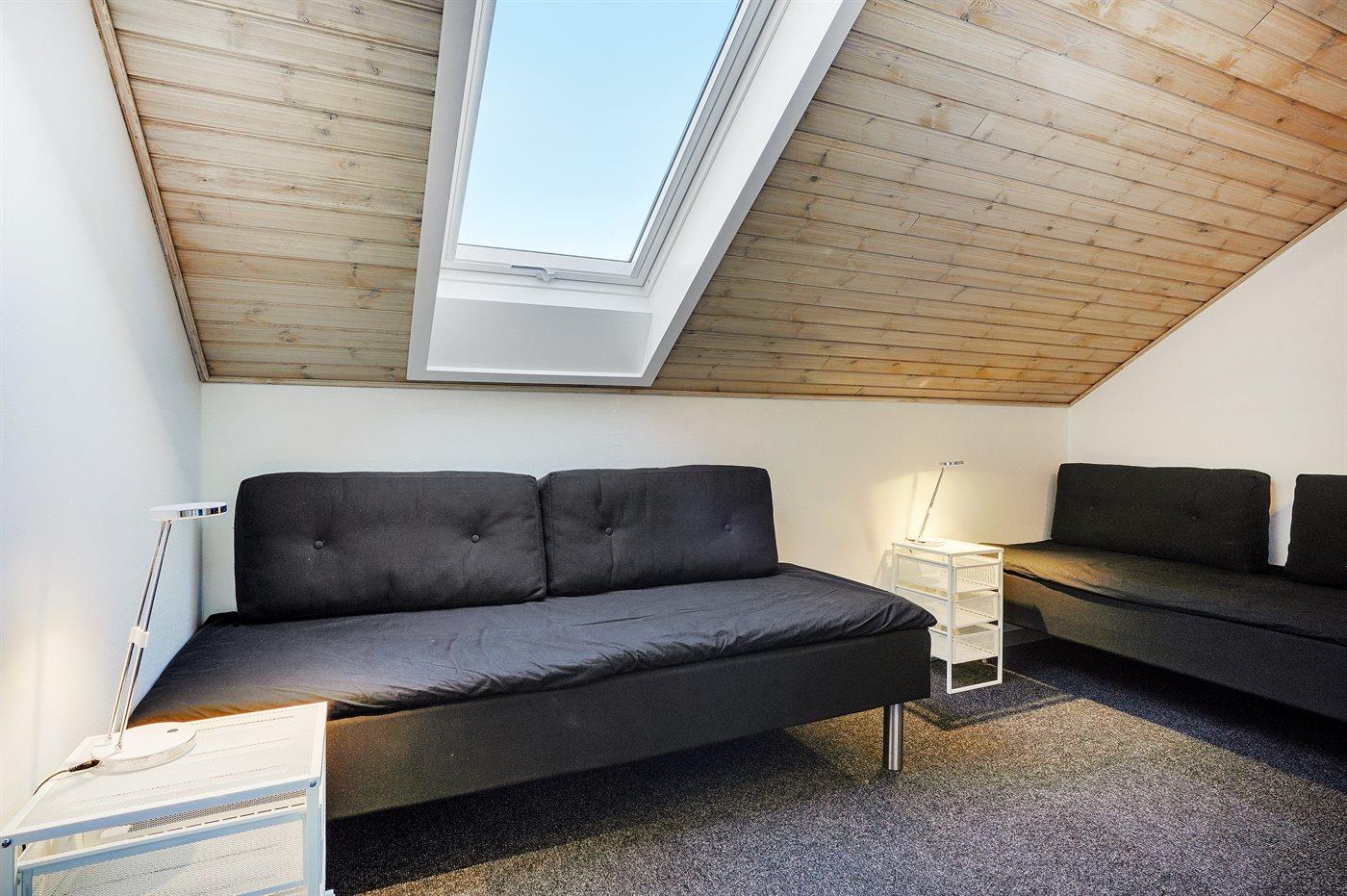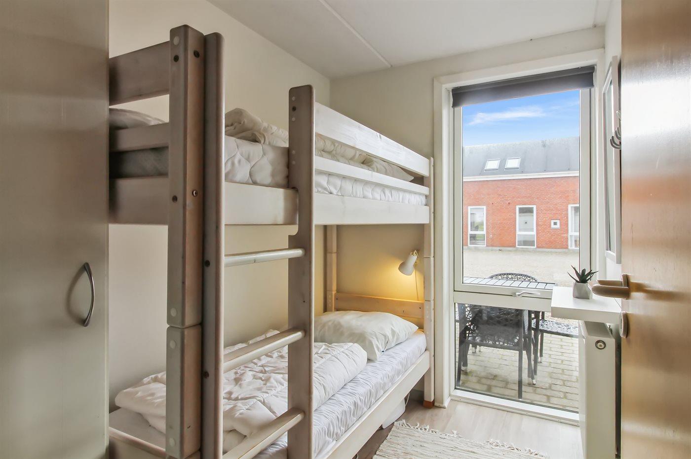 Der er i alt 3 soveværelser. Sovepladserne fordeler sig på: 2 sovepladser i dobbeltseng. 2 sovepladser i enkeltsenge. 2 sovepladser i køjeseng.