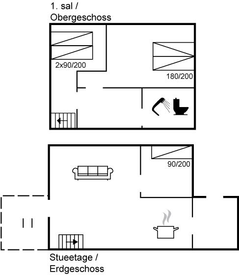 Der er i alt 3 soveværelser. Sovepladserne fordeler sig på: 4 sovepladser i dobbeltsenge. 1 soveplads i enkeltseng.