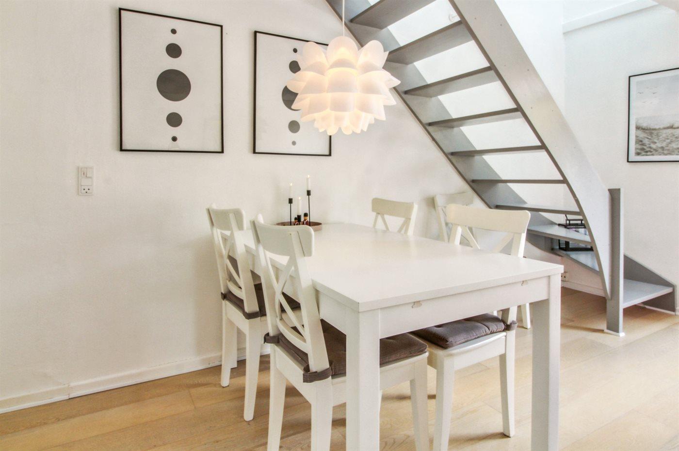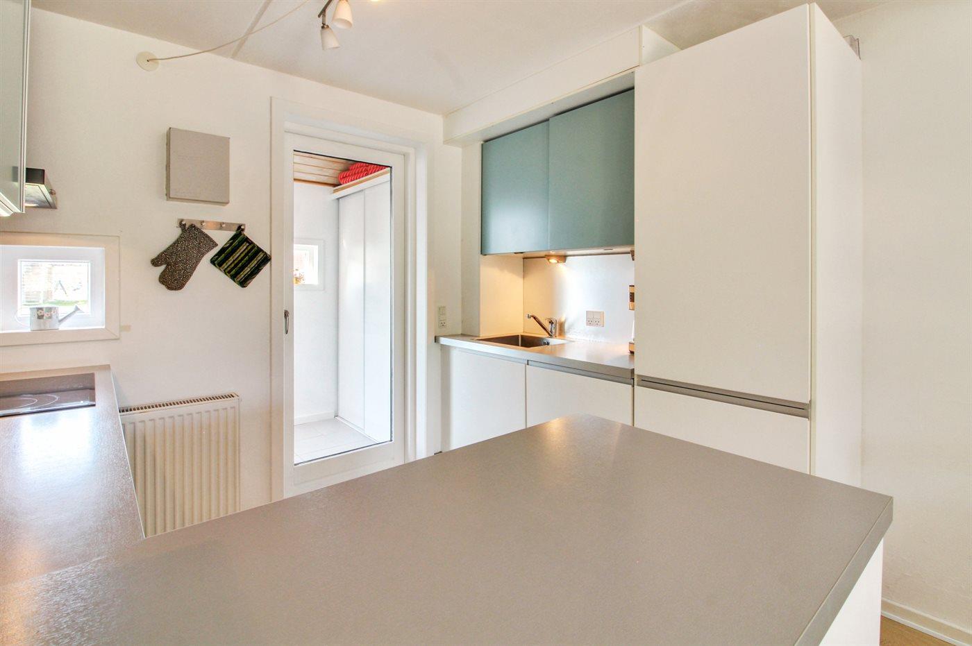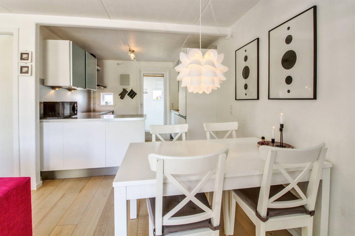 Køkkenet er udstyret med 1 køleskab. Der er 4 induktionskogeplader, varmluftovn, mikrobølgeovn samt opvaskemaskine.