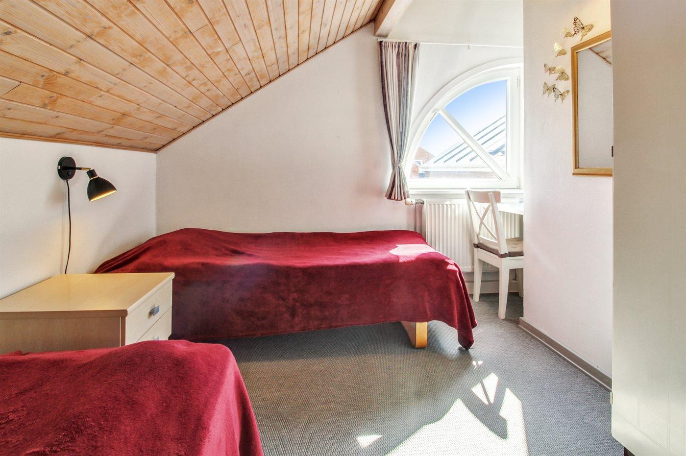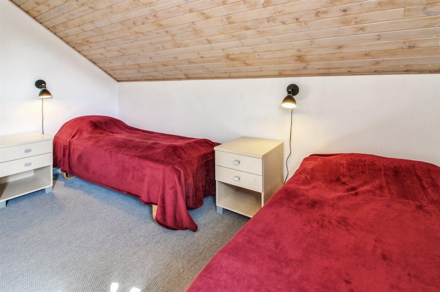 Der er i alt 3 soveværelser. Sovepladserne fordeler sig på: 2 sovepladser i dobbeltseng. 3 sovepladser i enkeltsenge.