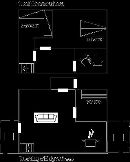 Der er i alt 3 soveværelser. Sovepladserne fordeler sig på: 2 sovepladser i dobbeltseng. 2 sovepladser i enkeltsenge. 2 sovepladser i køjeseng. Derudover er der 1 stk. barneseng.