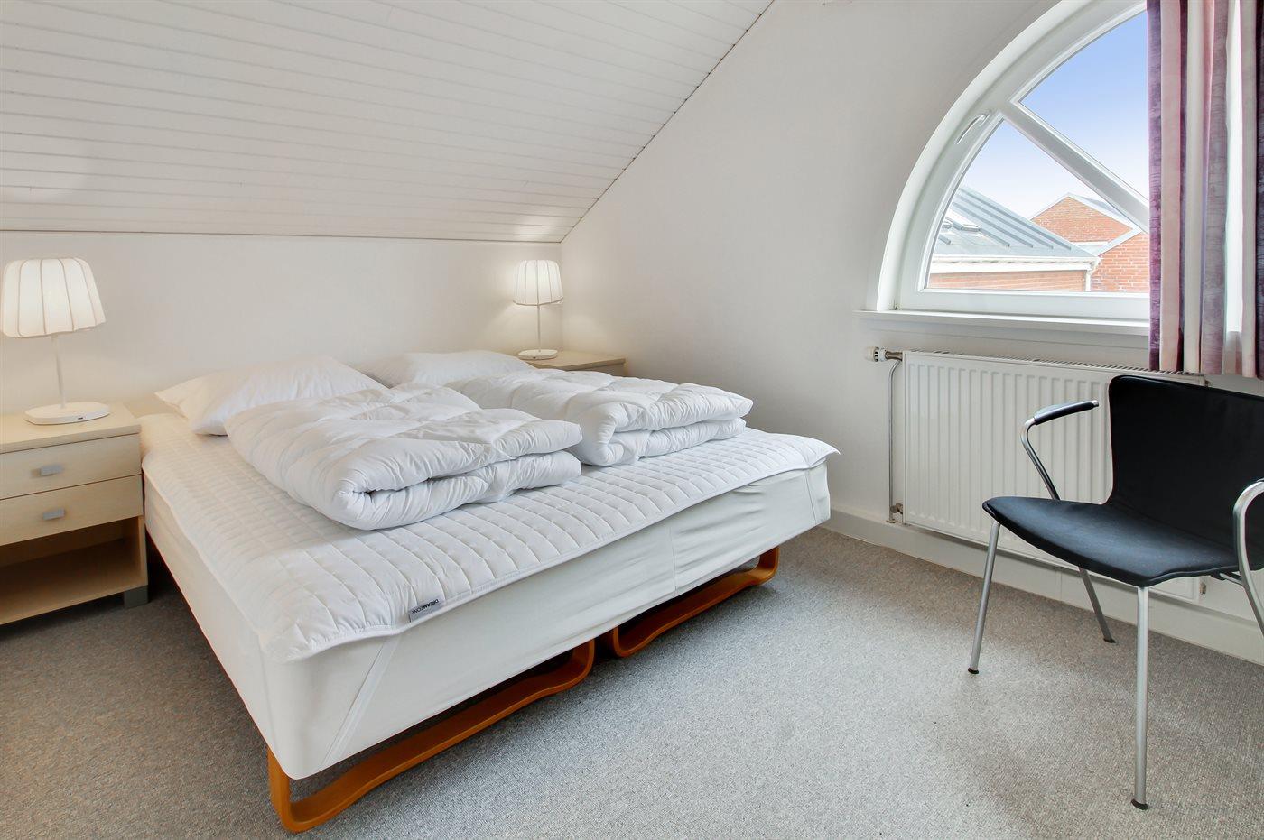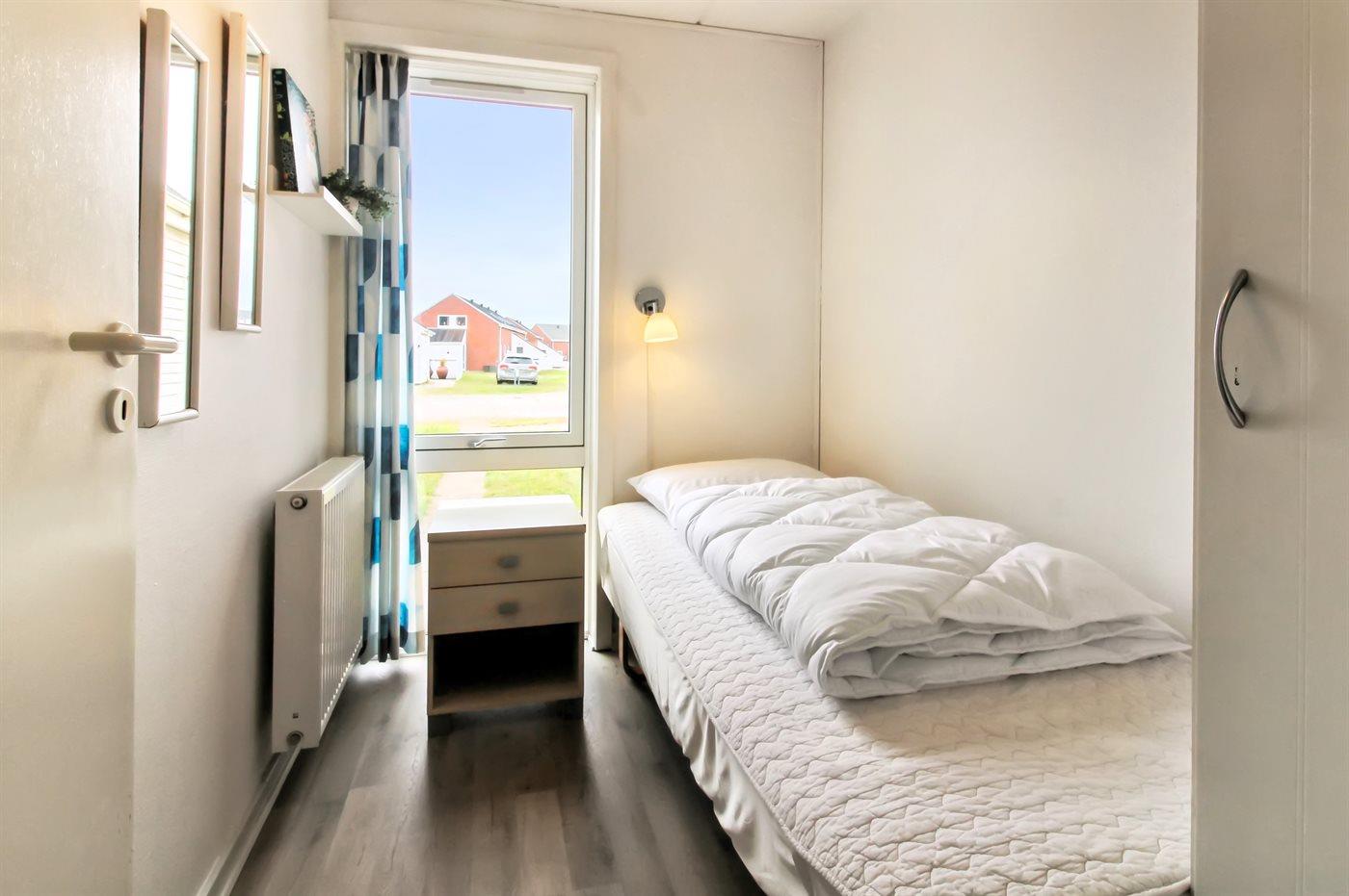 Der er i alt 3 soveværelser. Sovepladserne fordeler sig på: 2 sovepladser i dobbeltseng. 3 sovepladser i enkeltsenge.