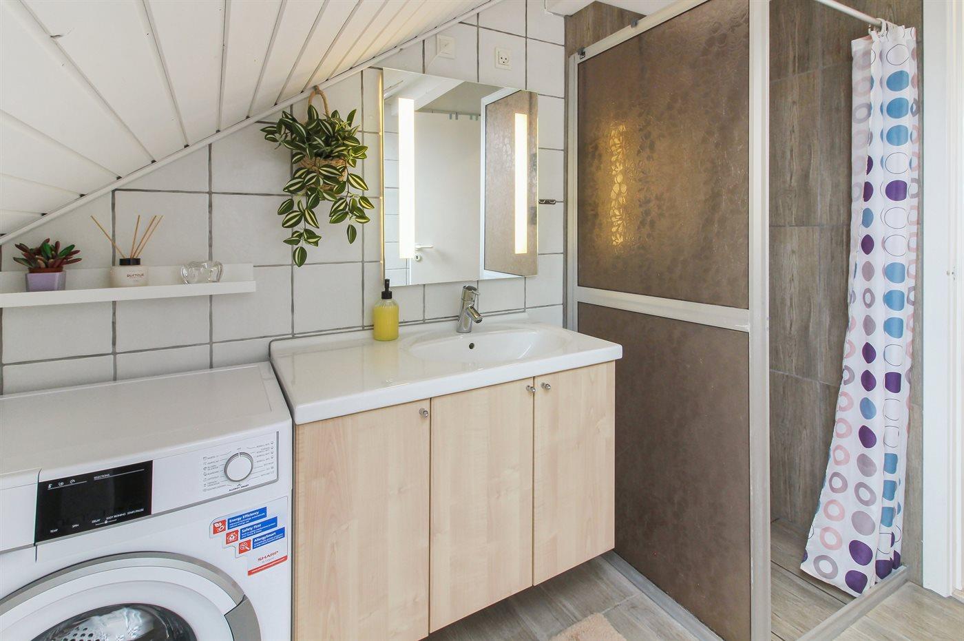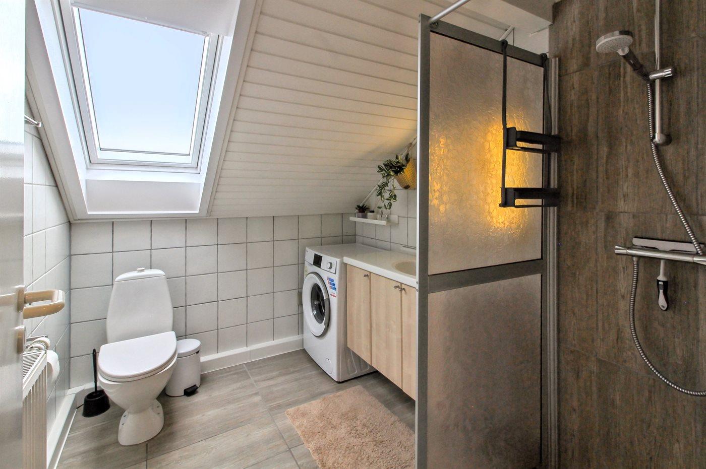 Der er 1 badeværelse med bruser og 1 toilet.