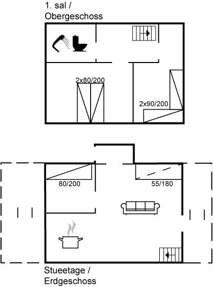 Der er i alt 3 soveværelser. Sovepladserne fordeler sig på: 2 sovepladser i dobbeltseng. 3 sovepladser i enkeltsenge. 1 soveplads i sovesofa (enkelt). 1 af disse sovepladser befinder sig i stuen. Derudover er der 1 stk. barneseng.