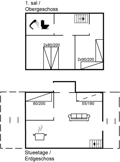 Der er i alt 3 soveværelser. Sovepladserne fordeler sig på: 2 sovepladser i dobbeltseng. 3 sovepladser i enkeltsenge. 1 soveplads i sovesofa (enkelt). Derudover er der 1 stk. barneseng.