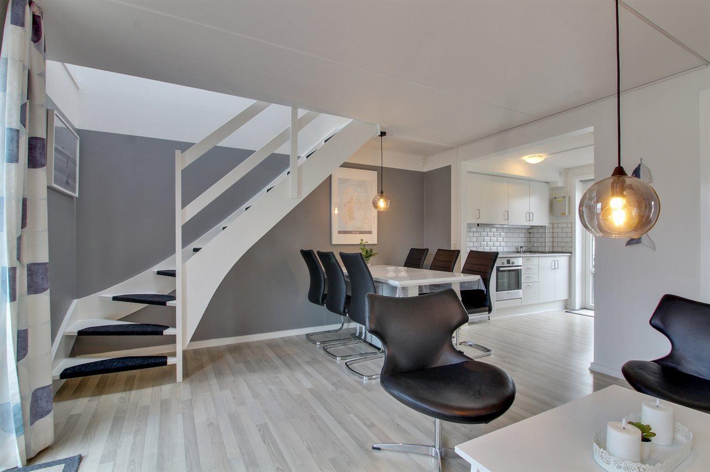Nyrenoveret ferielejlighed i Rømøs feriecenter med terrasse og adgang til pool og aktiviteter.