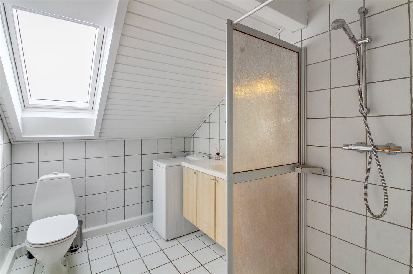 Der er 1 badeværelse med bruser og 1 toilet.