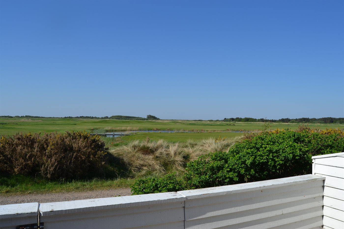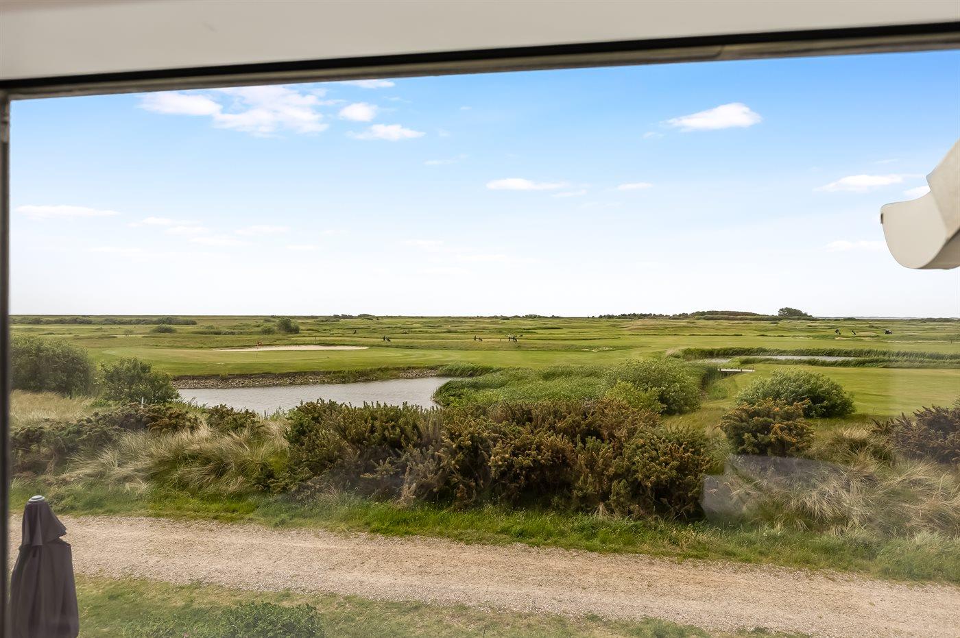 Moderne feriebolig i første række med udsigt til golfbane og Vadehavet, sydvendt terrasse og adgang til badeland.