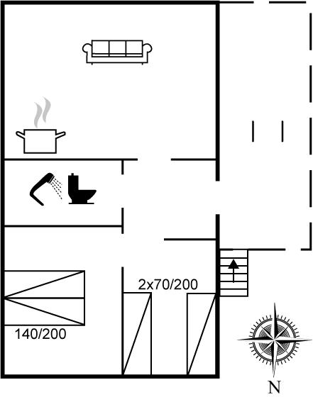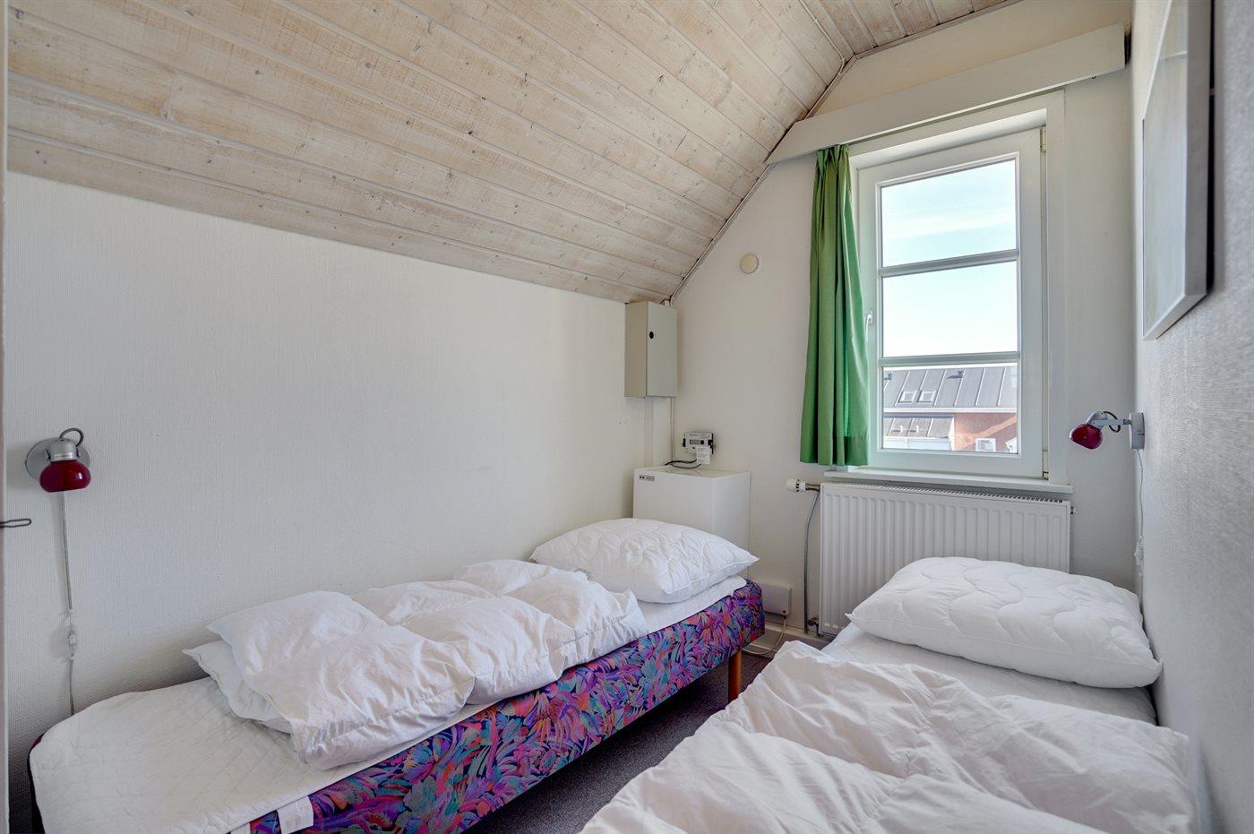 Der er i alt 2 soveværelser. Sovepladserne fordeler sig på: 2 sovepladser i dobbeltseng. 2 sovepladser i enkeltsenge.