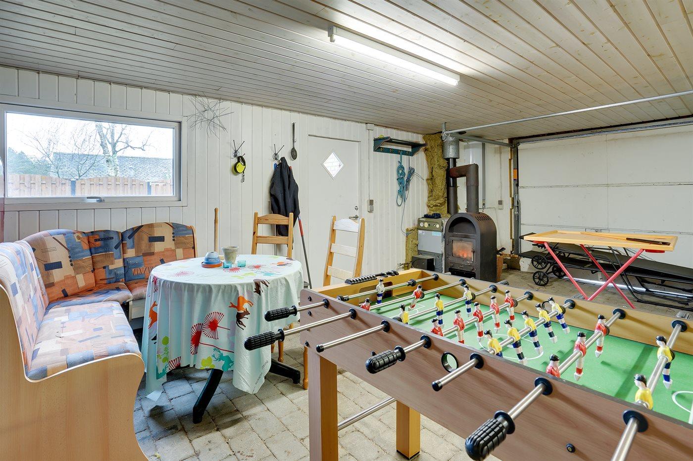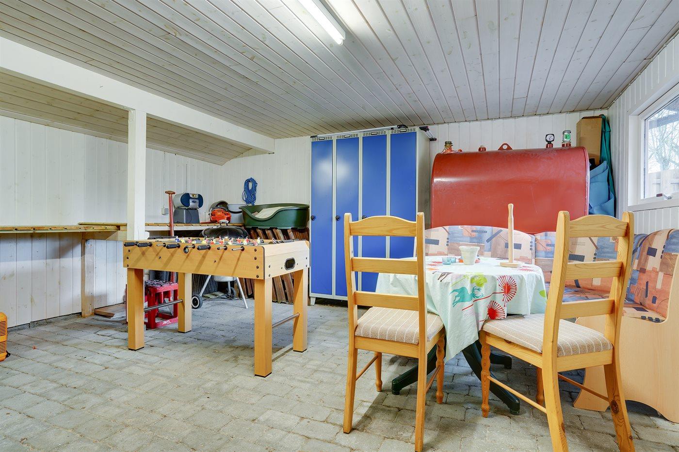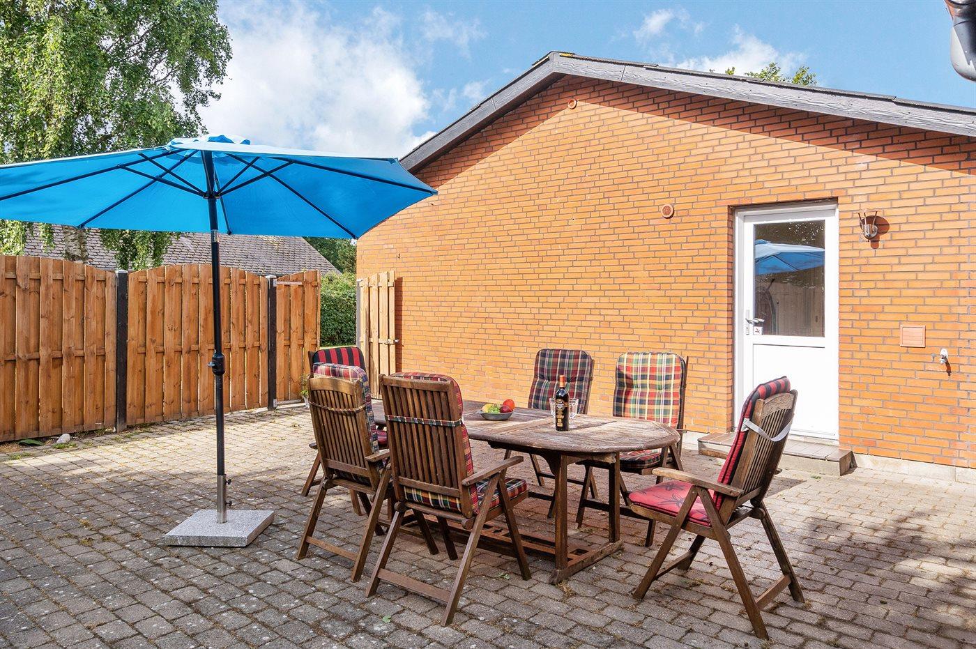 Ferieboligen er beliggende på en 800 m² stor havegrund. Grunden er indhegnet. Der er 2000 m til havet. Der er 600 m til Vadehavet. Nærmeste forretning er beliggende i en afstand af 500 m. Der er en golfbane i en afstand af 700 m. Til ferieboligen hører 100 m² terrasseareal. Heraf i alt 70 m² lukket terrasse. Ligeledes er der adgang til udestue. Grill til rådighed. Parkering ved ferieboligen.