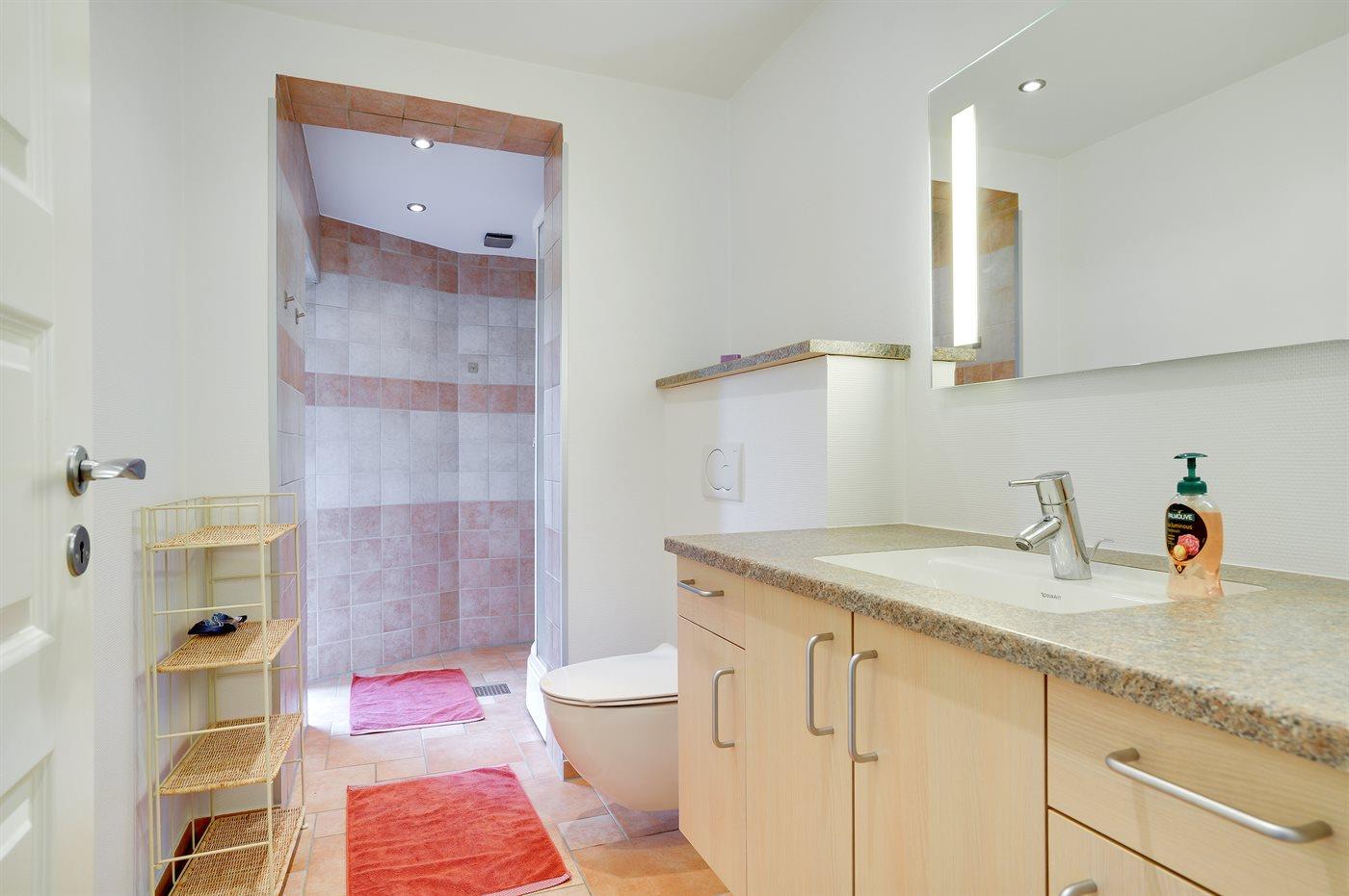 Der er 1 badeværelse med bruseniche og 1 toilet.. Der er gulvvarme på 1 badeværelse.
