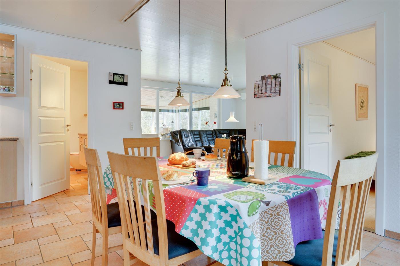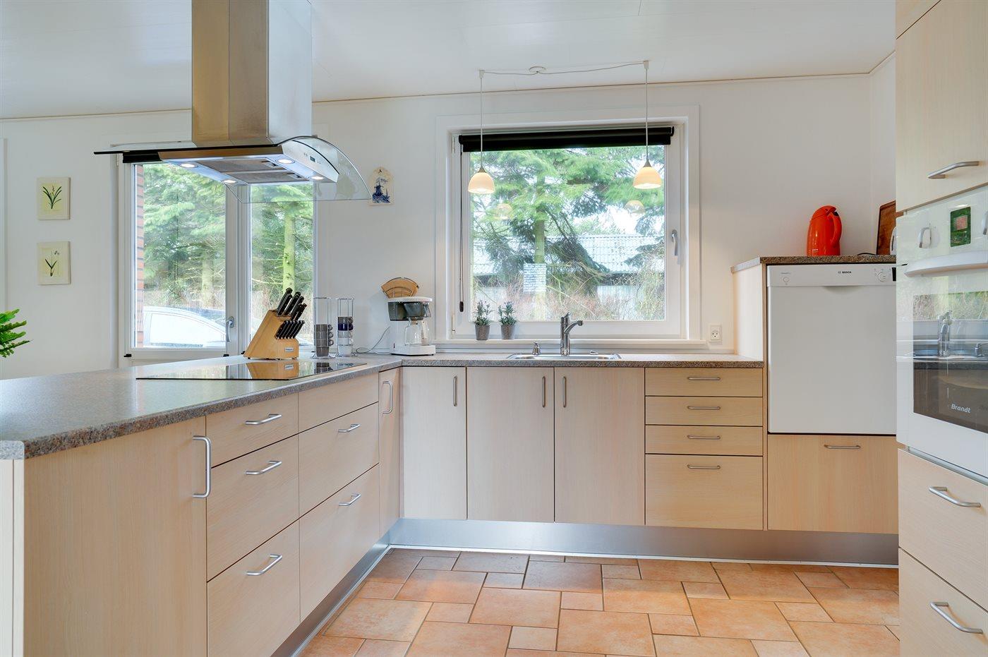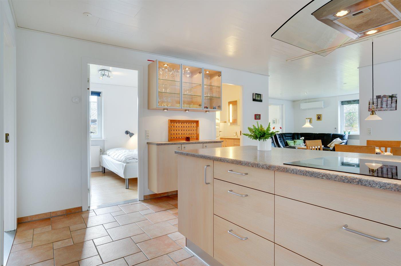 Køkkenet er udstyret med 1 køleskab. Der er 4 induktionskogeplader, varmluftovn, mikrobølgeovn samt opvaskemaskine.