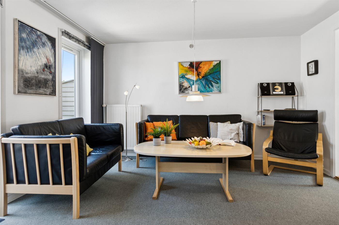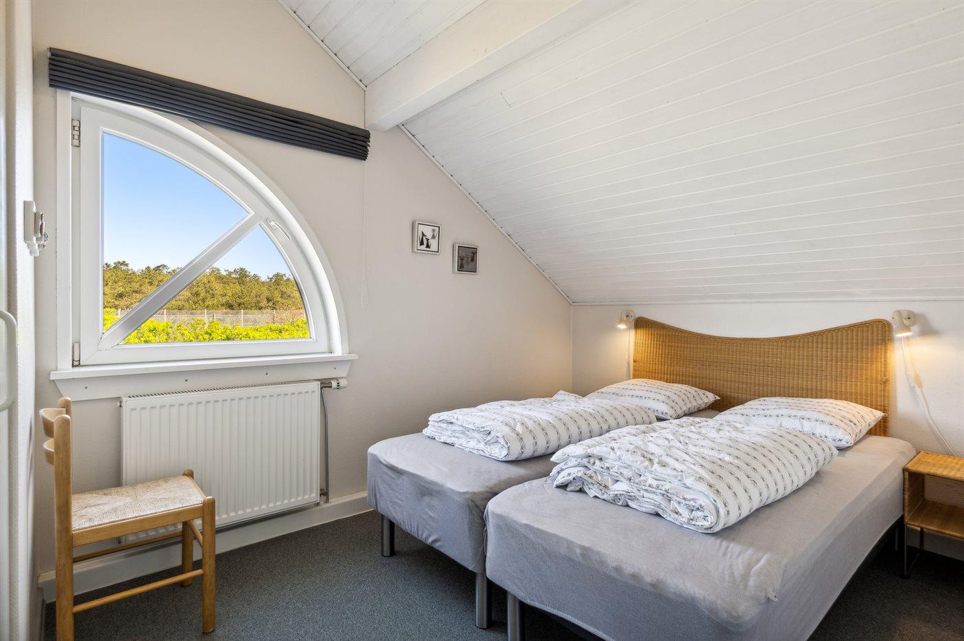 Denne pæne ferielejlighed i 2 etager, bygget i 1987 og renoveret i 2006, ligger i feriecentret RIM. Til lejligheden hører et åbent terrasseareal med havemøbler og kuglegrill. Badeværelse på 1. sal med bruser og vaskemaskine. Køkkenet er kombineret med opholdsstuen og bl.a. udstyret med opvaskemaskine, mikrobølgeovn, varmluftovn og komfur med keramiske kogeplader. Opholdsstuen indeholder DVD-afspiller, CD-afspiller og fladskærms-TV tilsluttet fællesantenne. Fra opholdsstuen er der desuden udgang til terrassen. Gratis, trådløs Internetforbindelse til rådighed (computer skal medbringes). Sovepladserne er fordelt på 2 værelser på 1. sal: 1 med dobbeltseng og 1 med 2 enkeltsenge samt 1 i stueetagen med køjeseng. Desuden barneseng og høj barnestol til rådighed. På feriecentret findes mange aktivitetsmuligheder samt fælles sauna og fælles swimmingpool.