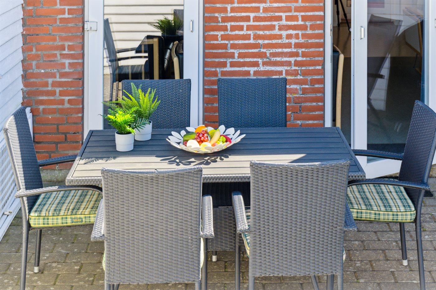 Hyggelig ferielejlighed i RIM feriecenter med terrasse, fælles pool og sauna, tæt på Vadehavet og golfbane.