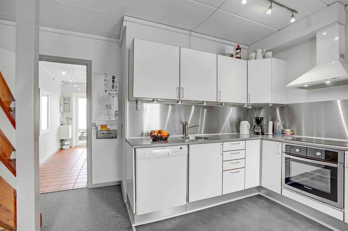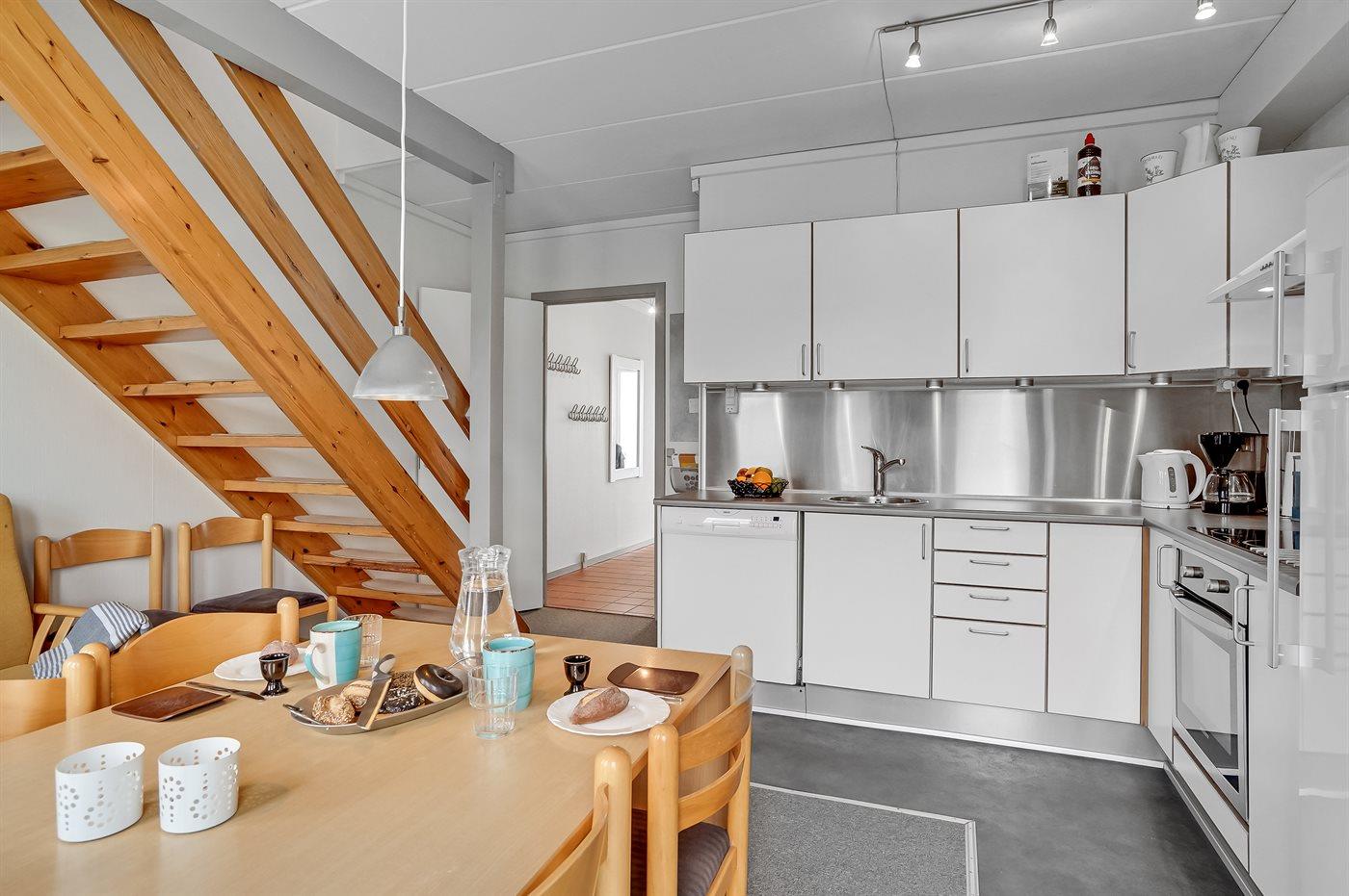 Køkkenet er udstyret med 1 køleskab. Der er 4 induktionskogeplader, varmluftovn, mikrobølgeovn samt opvaskemaskine.