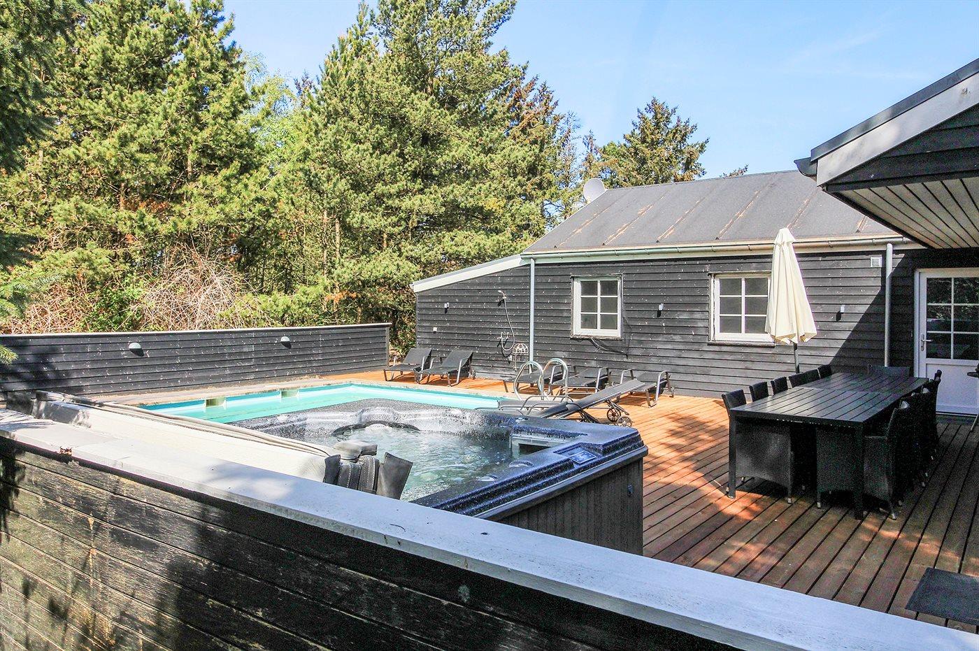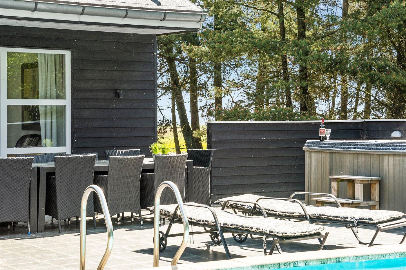 Flot sommerhus med pool og spa tæt på Vadehavet, perfekt til afslapning i naturskønne omgivelser.