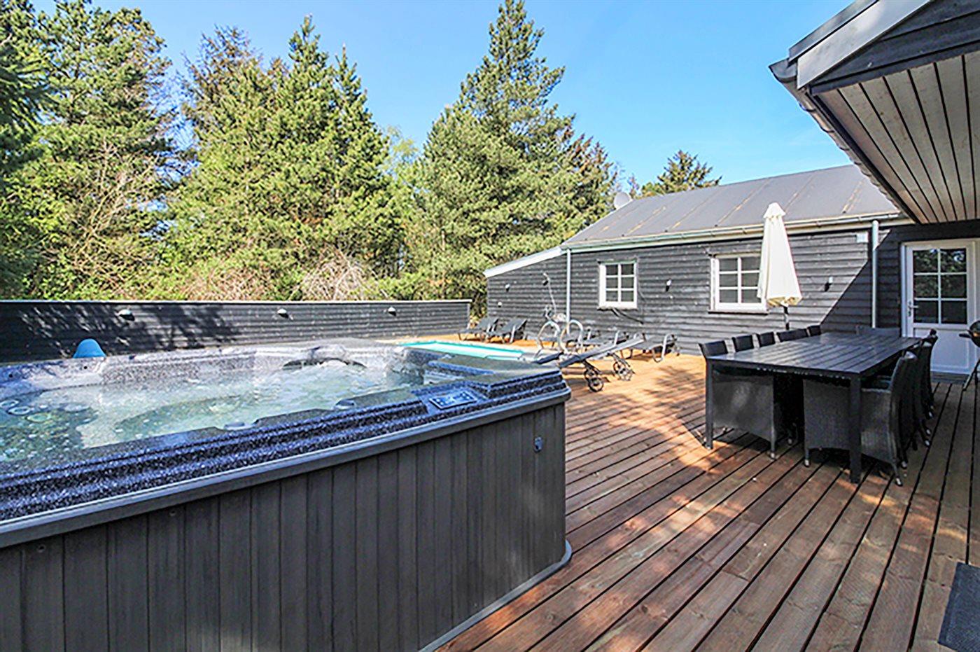 Der er mulighed for afslapning i indendørs spa til 2 personer. Der er mulighed for afslapning i udendørs standvandsspa til 5 personer.