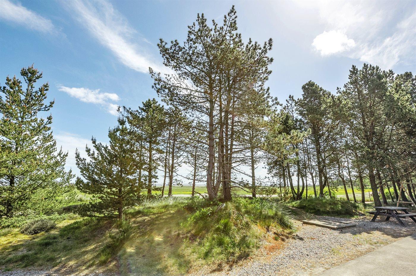 Ferieboligen er beliggende på en 2500 m² stor naturgrund. Der er 3700 m til havet. Der er 100 m til Vadehavet. Nærmeste forretning er beliggende i en afstand af 500 m. Til ferieboligen hører 80 m² terrasseareal. Der er redskabsrum. Gynge. Sandkasse. Parkering ved ferieboligen.