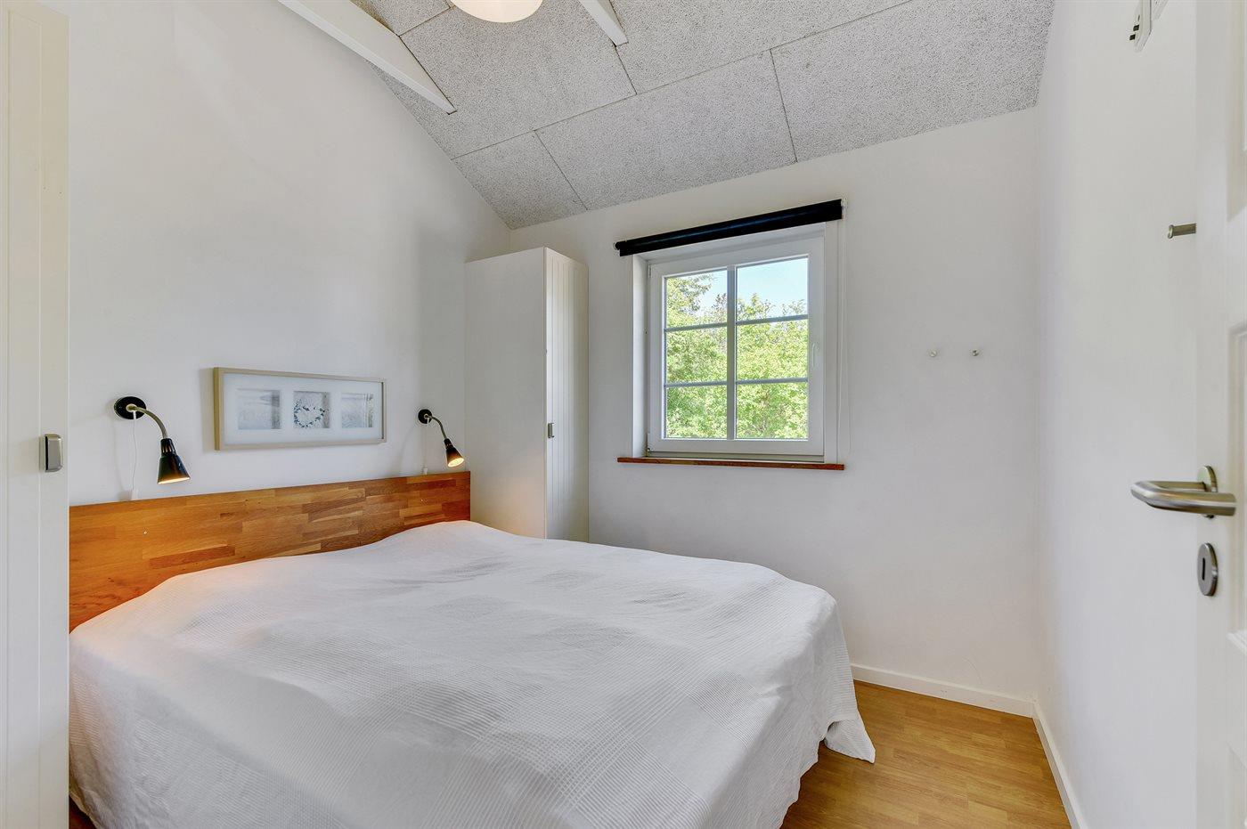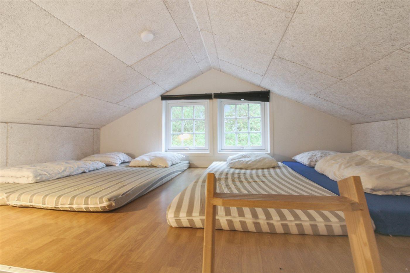 Der er i alt 5 soveværelser. Sovepladserne fordeler sig på: 10 sovepladser i dobbeltsenge. 4 sovepladser i enkeltsenge. 4 af disse sovepladser befinder sig på husets hems. Derudover er der 1 stk. barneseng.