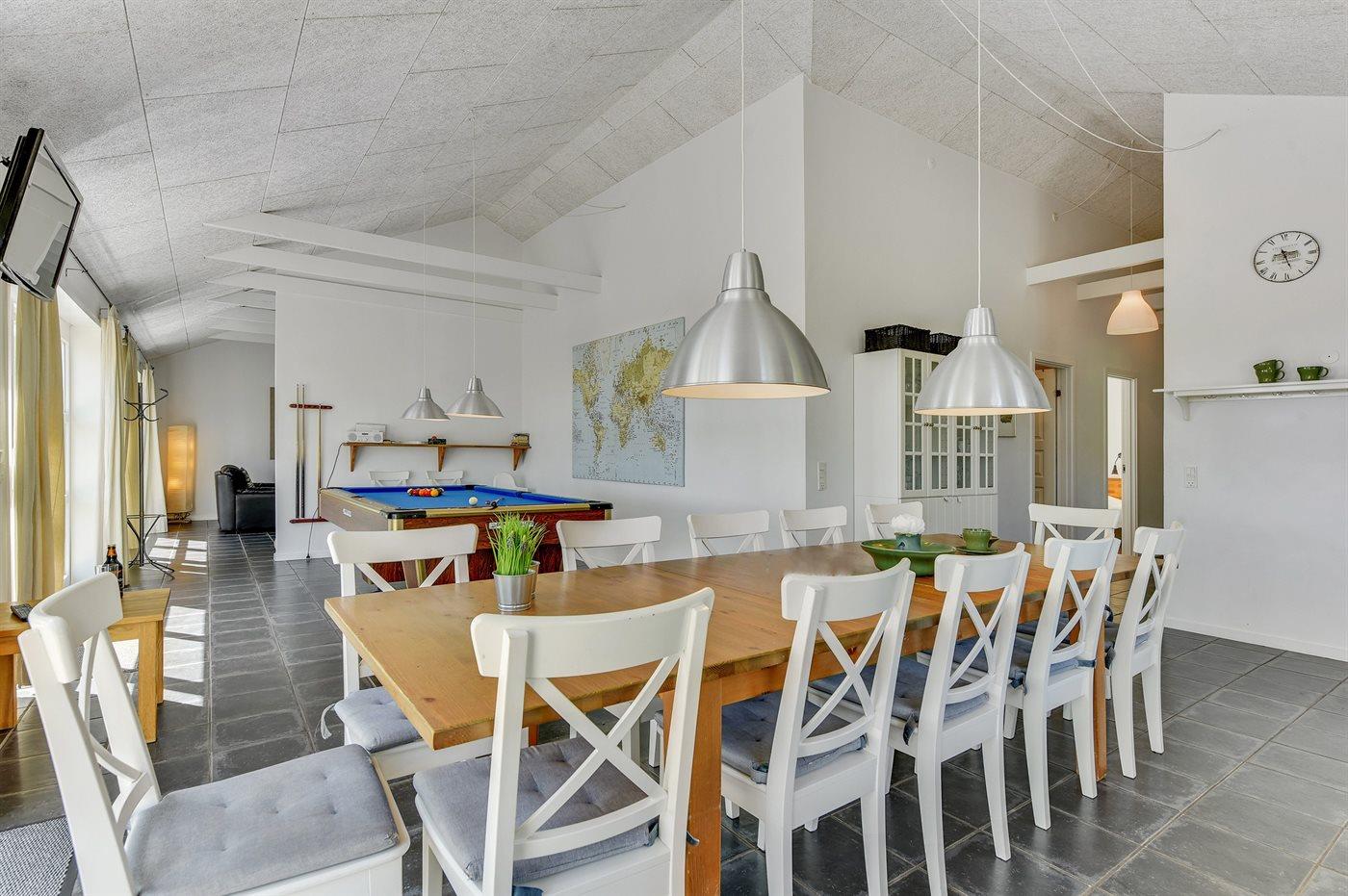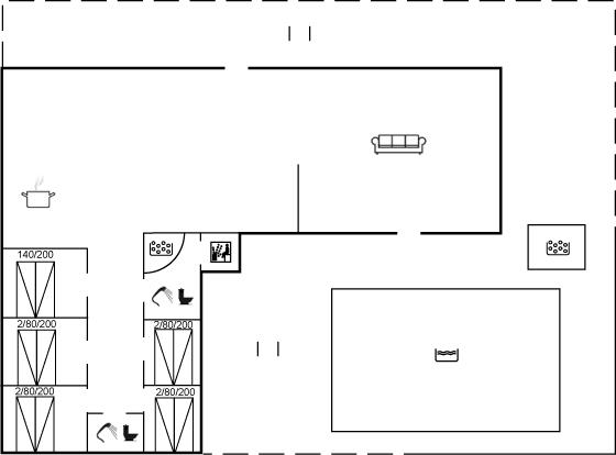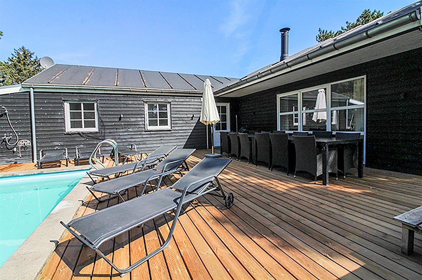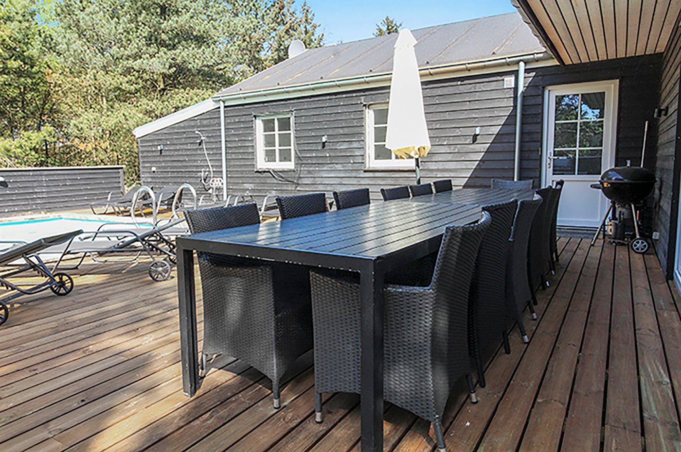 Sommerhuset egner sig til 14 personer samt 1 barn op til 3 år. Ferieboligen er på 150 m² og er bygget i 2010. Det er tilladt at medbringe 3 husdyr. Ferieboligen er udstyret med energibesparende varmepumpe. Ferieboligen har vaskemaskine. Tørretumbler. Frysekapacitet på 176 liter. Der er desuden brændeovn. Til de små er der 1 stk. barnestol.